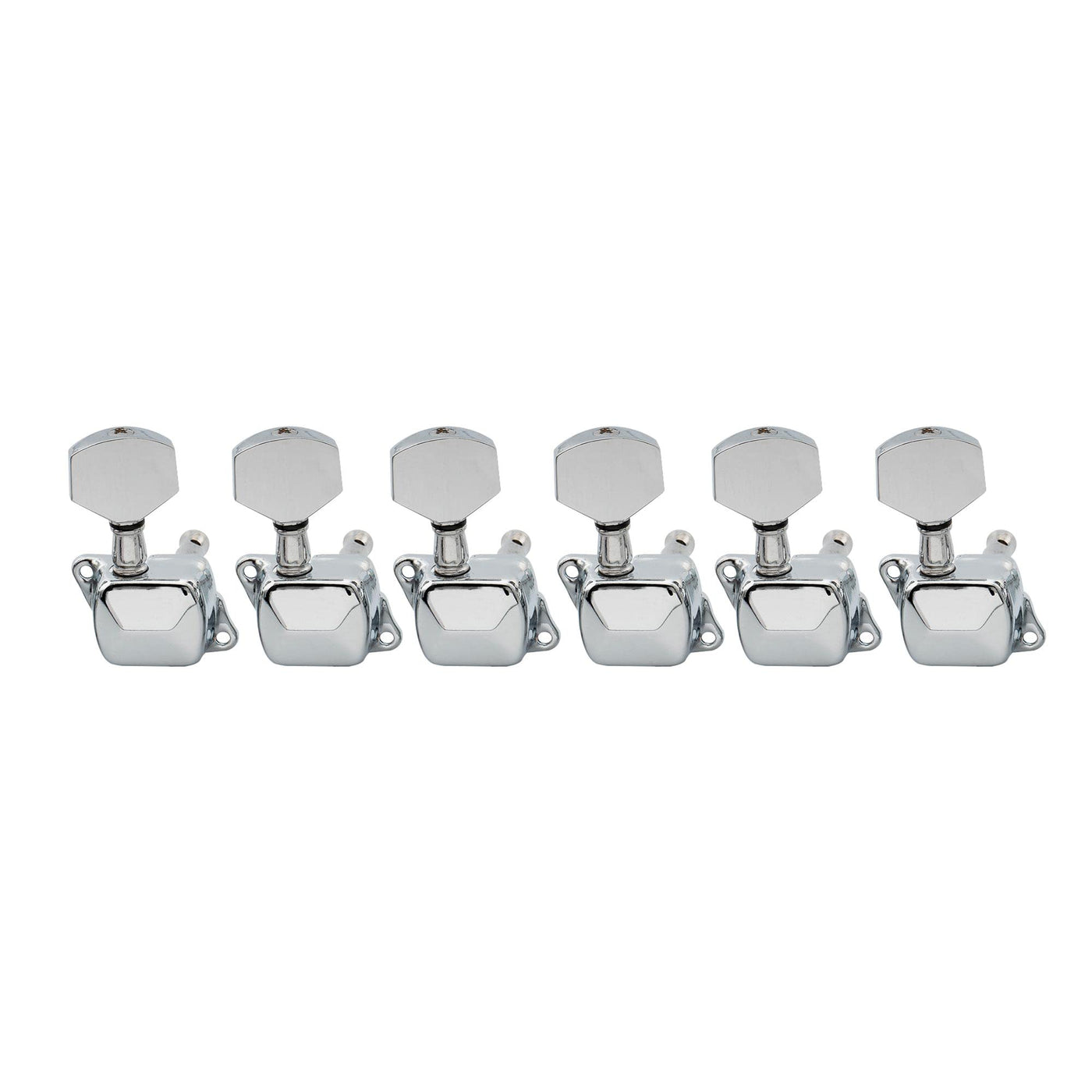 Musiclily 6 Inline Semi Sealed Electric Guitar Machine Heads 6R Tuning Pegs Keys Tuners Set For Fender Squier Strat Replacement, Chrome.