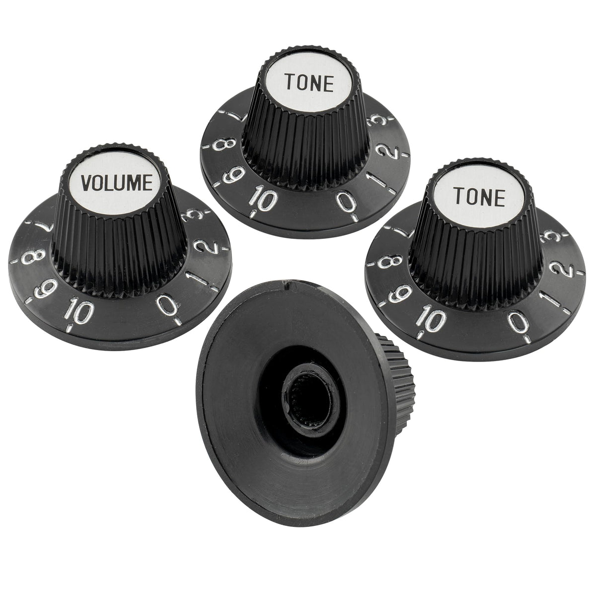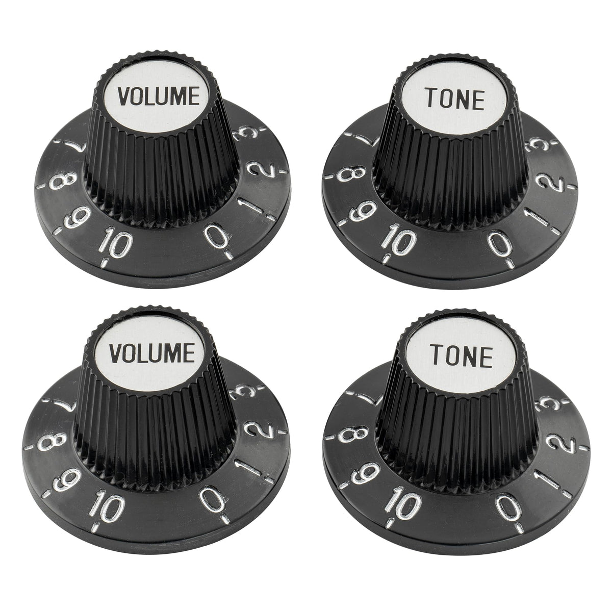 Musiclily Pro Fine 24 Splines Witch Hat Knobs Top Hat Knobs Tone Volume Control Knobs For Electric Guitar Bass Amplifier Effect Pedal, Black With Silver Reflector (Set Of 2T2V).