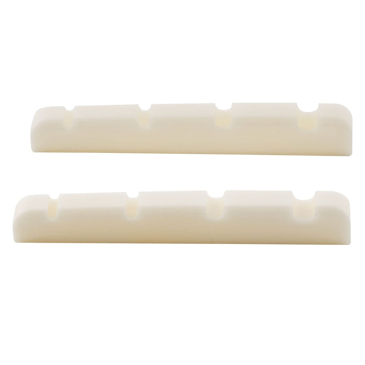 Flat Bottom, Bone Nut For For 4 String Bass String Spacing(E-G):1-18 (285Mm),These Nuts Are Precut And Slotted To Make Your Replacement Faster And Easier Length:1-12 Inch (38Mm)Thickness: 18 Inch (35Mm) Height: 316 Inch(45Mm) Material:Bone Color: Bleached White Package Includes: 2 Pcs Bass Nuts