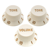 Musiclily Ultra Universal Fitting Size Strat Knobs 2 Tone 1 Volume Set For Fender Stratocaster St Style Electric Guitar, Aged White.