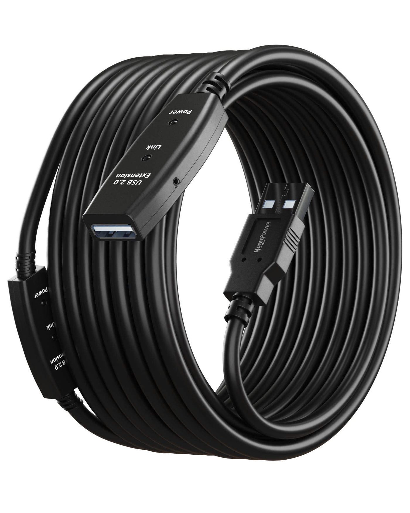 Mutecpower Usb 2.0 Male To Female Cable With Extension Chipset - Active Extension / Repeater Cablethe Mutecpower Hi-Speed Usb 2.0 Active Extension Cable Is An Indispensable Accessory For Pc And Mac Users To Bring Usb Peripherals Such As Hard Drives, Printers, Mice, Keyboards, And Usb Hubs Within Reach From Behind The Desk Or Across The Room. Active Extension Cable Is Bus Powered With An Integrated Amplification Chipset To Ensure The Hi-Speed Usb 2.0 Performance At Longer Lengths Than A Normal Usb Extension Cable. The Combination Of Gold-Plated Connectors, Bare Copper Conductors, And Foil &Amp; Braid Shielding Provides Superior Cable Performance And Error-Free Data Transmission Specifications Connector 1: Usb 2.0 Type A Male Connector 2: Usb 2.0 Type A Female Cable Rating: Hi-Speed Usb 2.0 Up To 480 Mbps Data Transfer Rate - Not Recommended For Devices With High Power Consumption Requirements; This Cable Will Not Charge Ipads, Ipods, Or Iphones Ac Power Supply Dc 5V 2A With 3.5*1.25 Mm Plug Color: Black Available Cable Lengths 10M, 15M, 20M, 25M And 30M Warranty Limited One-Year Warranty And Lifetime Product Support