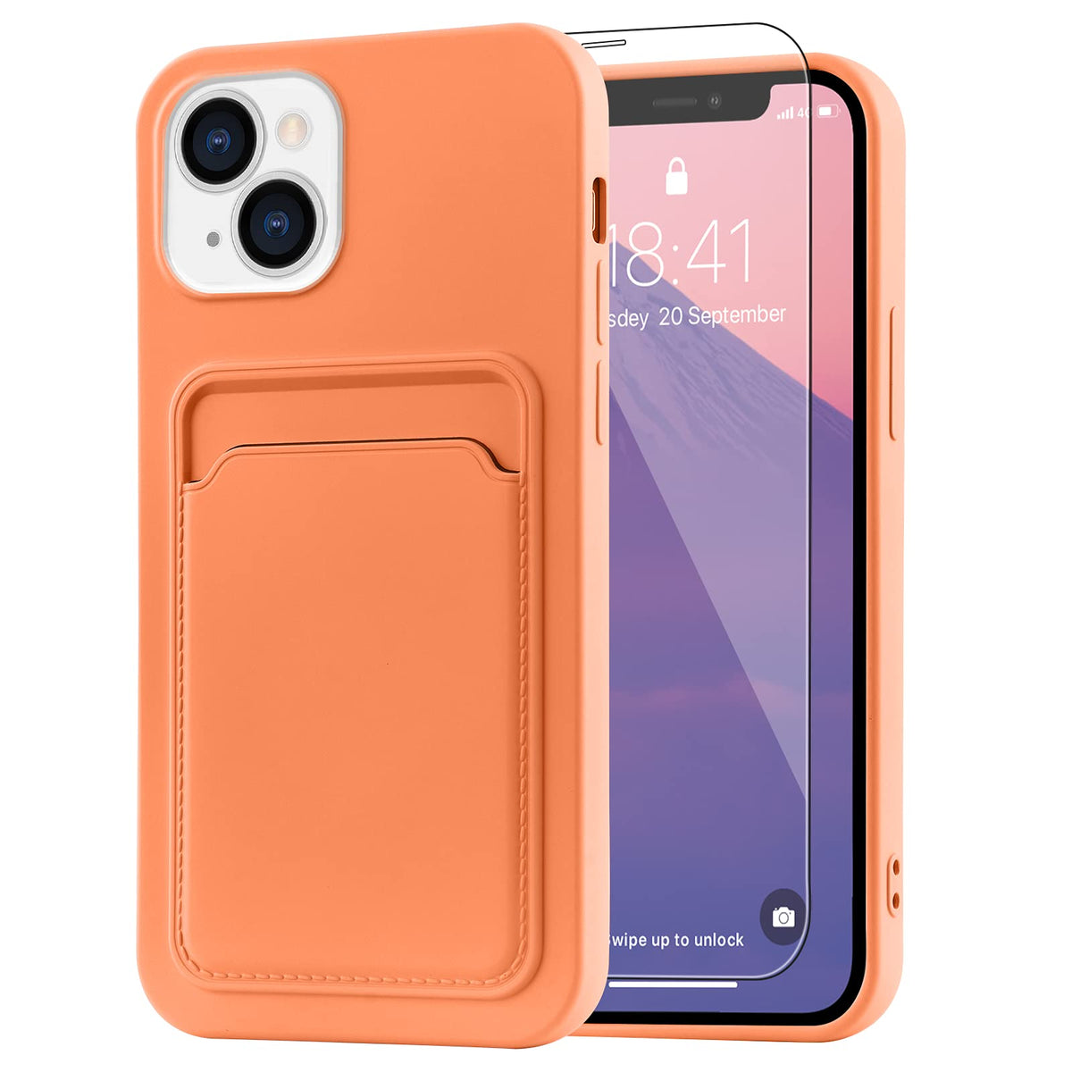 Mzelq Compatible With Iphone 13 (6.1 Inch) Case, Card Holder Camera Protection Cover For Iphone 13 + Screen Protector, Card Slot