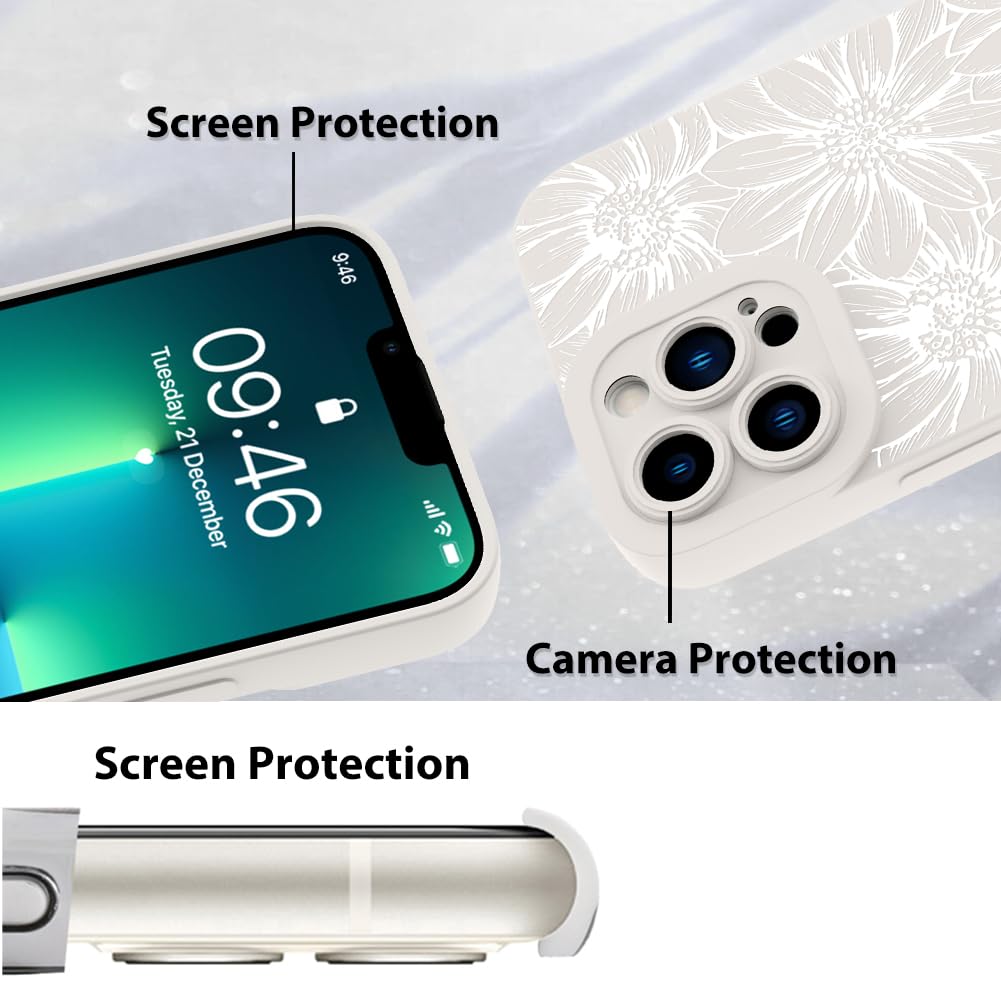 Mzelq For Iphone 13 Pro Max Case, Silicone Floral Flowers Sunflowers Cute Pattern, Camera Protection Soft Slim Phone Case For Ip