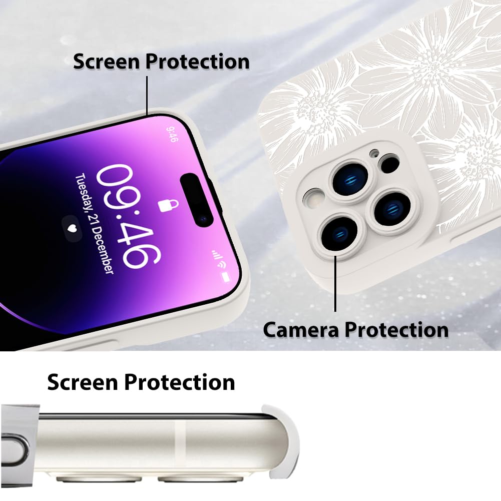 Mzelq For Iphone 14 Pro Case, Silicone Floral Flowers Sunflowers Cute Pattern, Camera Protection Soft Slim Phone Case For Iphone