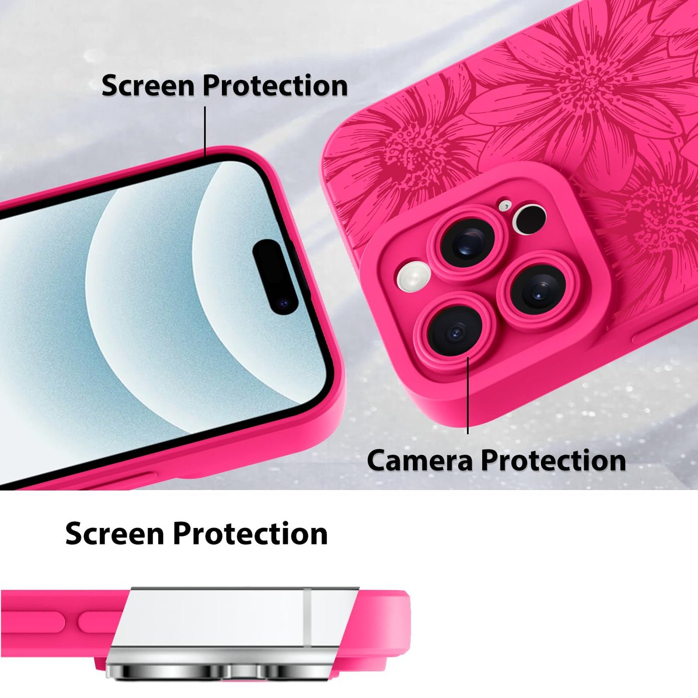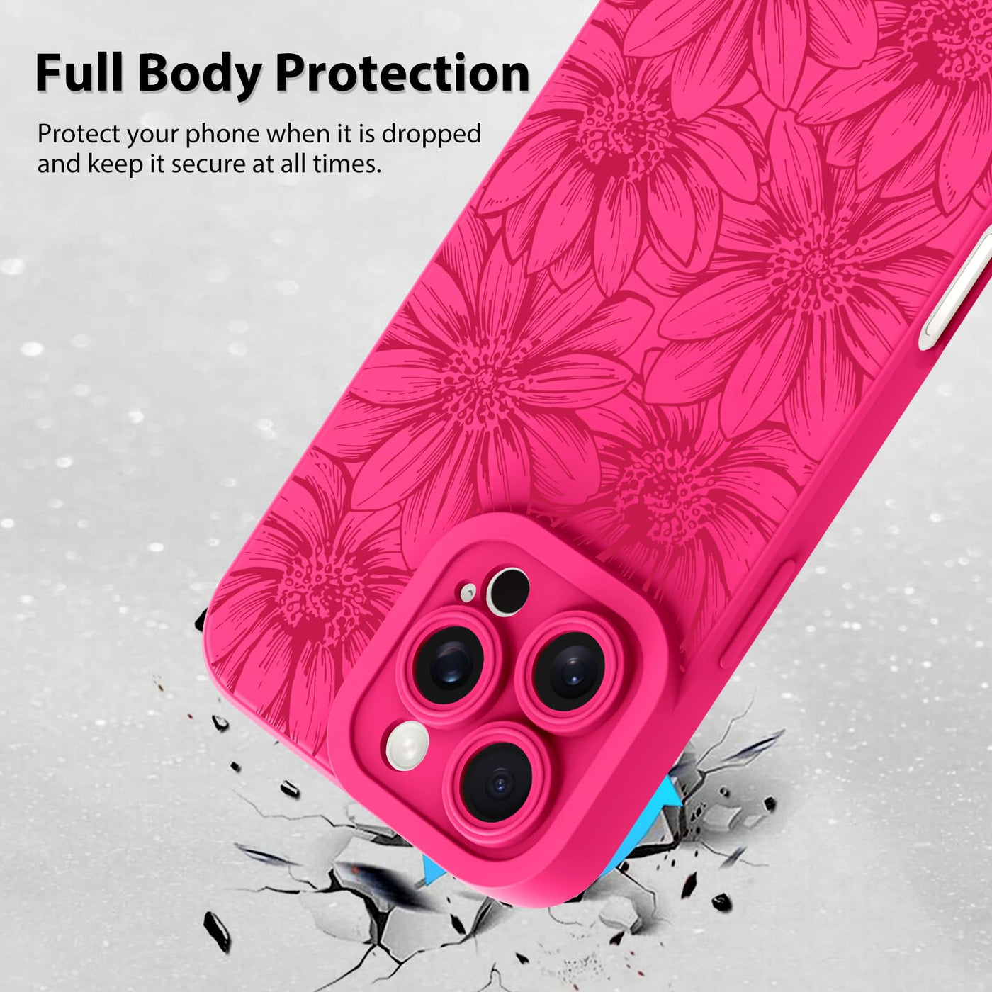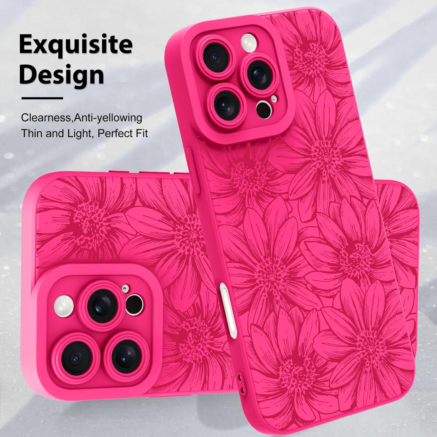 Mzelq For Iphone 16 Pro Case Case, Silicone Floral Flowers Sunflowers Cute Pattern, Camera Protection Soft Slim Phone Case For G