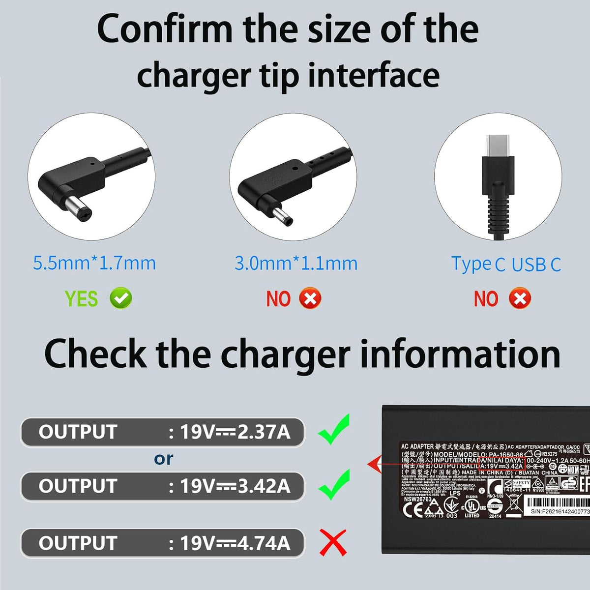 Product Specifications: Input: 100-240V / 50-60Hz Output: 19V-3.42A 65W Connector: 5.5Mm *1.7Mm Please Check The Connector Interface Picture Carefully. Compatible With: Acer Aspire Charger 3 5 E1 E3 E5 Es1 S3 V3 V5 R7 F5 M5 Series , Acer Aspire 3 Series A114-31 A114-31-C4Hh A114-31-C5Gm A114-32 A114-32-C1Ya A114-32-C3No A115-31 A115-31-C2Y3 A115-31-C23T A115-31-C0Yl A115-31-C6Xm A115-31-C23T A315-21 A315-21-95Kf A315-31 A315-31-C514 A315-31-C58L A315-32 A315-32-C0S5 A315-41 A315-41-R14K A315-41-R132 A315-41-R9J1 A315-51 A315-51-380T A315-51-51Sl A315-51-31Rd A315-51-56Gt A515-51-58Hd A515-51-89Up A515-51-53V6 A315-53 A315-53-54Xx A315-53-55Y1 A315-53-52Cf A315-53-56Er A315-53-54Xx A315-53-54R3 A315-53-57Wf A315-53-30Bs A315-53-30N0 A315-56 A315-56-594W A315-56-59Du A315-56-58Cy Acer Aspire 5 Series A514-52 A514-52-78Md A514-52-799B A514-52-52Qt A514-52-59Ur A514-52-571Q A515-52-78Md A515-43-R19L A515-51-58Hd A515-51G-84Sn A515-51-3509 A515-52-78Md A515-51G-53V6 A515-43-R5Re A515-43 A515-43-R19L A515-43-R5Re A515-43-R6De A515-43-R070 A515-51 A515-51G A515-51-58Hd A515-51-50Rr A515-51-75Uy A515-51-51Lz A515-51G-84Sn A515-51G-84Sn A515-51-3509 A515-51G-53V6 A515-54-51Dj A515-54-30Bq A515-54G-73Wc Acer Aspire E1 E3 Series E1-431 E1-470P E1-522 E1-531 E1-532 E1-532P E1-570 E1-571 E1-572 E1-572P E1-771, E3-111 Acer Aspire E5 Series E5-511 E5-521 E5-521-23Kh E5-521-24Pq E5-522 E5-522-89W6 E5-473 E5-532 E5-551 E5-571 E5-571-563B E5-571-588M E5-571G E5-571P E5-571P-55Tl E5-571P-59Qa E5-573 E5-573G E5-573G-52G3 E5-574G E5-575 E5-575-33Bm E5-575-72L3 E5-575-72N3 E5-575G E5-575G-53Vg E5-575G-57D4 E5-575G-76Yk E5-576G E5-576G-5762 E5-576G-81Gd Acer Aspire Es1 Series Es1-411 Es1-511 Es1-512 Es1-521 Es1-531 Es1-711 Es1-572 Acer Aspire V3 Series V3-551 V3-571 V3-571G V3-572 V3-572G V3-572Pg V3-731 V3-112P-P7Lp V3-472P-324J V3-472P-324J Acer Aspire V5 Series V5-121, V5-122P, V5-123, V5-131, V5-132, V5-132P, V5-171, V5-561, V5- 561P,V5-121-0818 V5-122P-0408 V5-122P-0467 V5-122P-0468 V5-122P-0482 V5-122P-0600 V5-122P-0607 V5-122P-0637 V5-122P-0643 V5-122P-064 V5-122P-0681 V5-122P-0825 V5-122P-0857 V5-122P-0862 V5-122P-0863 V5-122P-0864 V5-122P-0869 V5-122P-0880 V5-122P- 0889 V5-122P-0894 V5-123-3466 V5-123-3472 V5-123-3634 V5-123-3659 V5-123-3848 V5-123-3876 V5-131-2629 V5-131-2647 V5-131-2802 V5-131-2840 V5-131-2887 V5-132-2489 V5-132P-2446 V5-171-6436 V5-171-6675 V5-561-6607 V5-561-9410 V5-561-9628 V5-561P-6675 V5-561P-6823 V5-561P-6869 V5-561P-9477 Acer Aspire F5 M5 Series F5-573 M5-481Pt M5-581T M5-583P Acer Aspire R7 Vn7 Series R7-571T R7-572 R7-572 Vn7-571G Acer Aspire 1410 3000 3680 4420 5000 5100 5250 5253 5315 5336 5420 5515 5516 5517 5520 5532 5534 5542 5551 5552 5560 5600 5610 5613 5620 5630 5650 5683 5720 5730 5732 5733 5734 5735 5736 5738 5739 5740 5741 5742 5745 5749 5750 5755 5810 5820 5920 5930 6920 6930 6935 7100 7103 7520 7540 7551 7736 7741 7745 7750 4630Z 4720Z 4730Z 5610Z 5620Z 5733Z 5734Z 5735Z 5750Z 5820T 7736Z 7739Z 7741Z As5735 As5735Z N19C3 N19C1 N16Q2 N17Q4 N15W5 N15W4 N20Q1