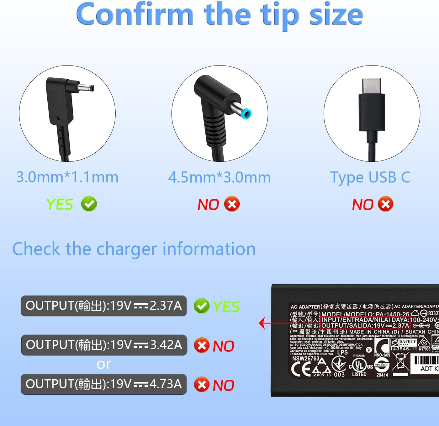 N20C5 N23C3 N20C4 N19H2 45W 3.0*1.1Mm Ac Charger Fit For Acer A515 45 R74Z A515 46 A315 23 A315 24P A115 31 A515 56 A115 32 A515