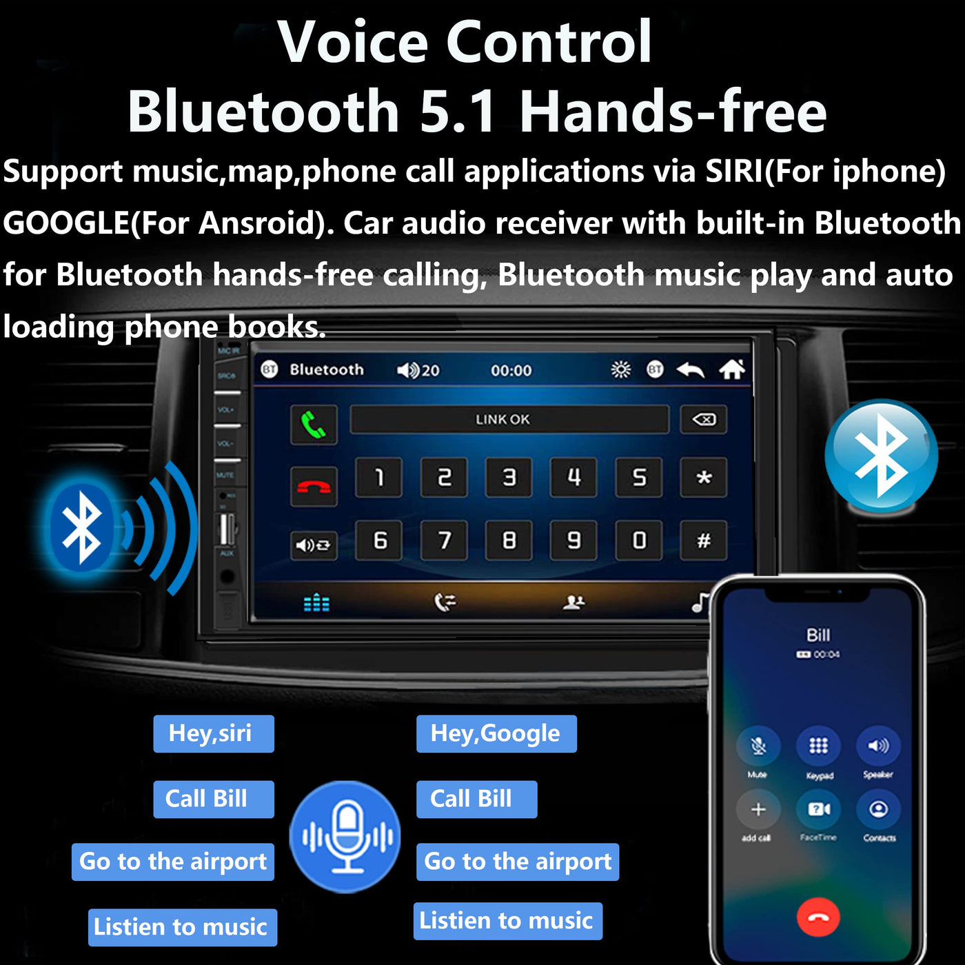 Naifay Double Din Car Stereo With Dash Cam | 7Inch Touchscreen Car Radio Receivers Support With Apple Carplay & Android Auto, Bl