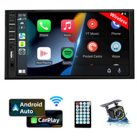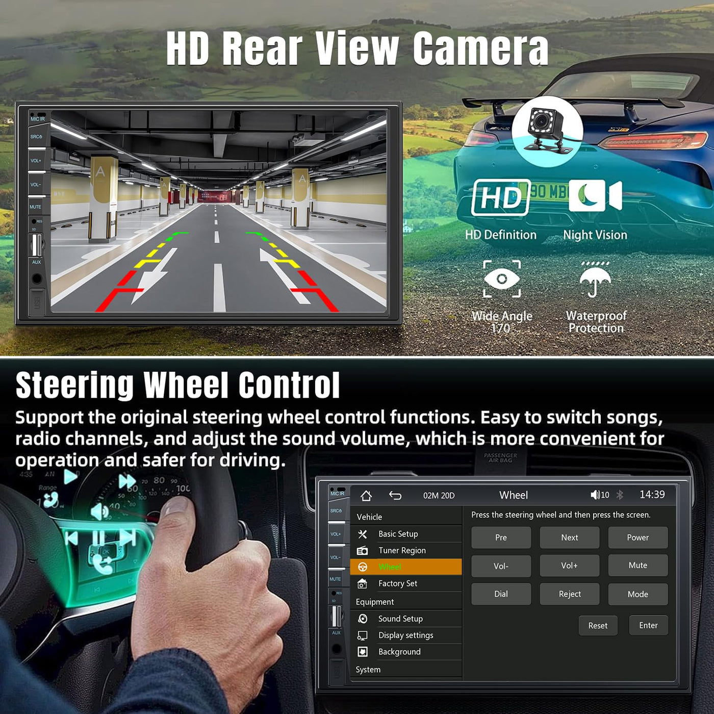 ?Compatible With Wired/Wireless Apple Carplay & Android Auto?- This Double Din Car Radio Supports Apple Carplay & Android Auto. Via And You Can Use This Feature To Easily Get Phone Contacts, Emails, Notifications, Map Navigation, Music, Videos, Hands-Free Phone Calls, And More. With The Help Of Siri Or Google Voice Assistant, Keep Your Hands Free For Totally Safe Driving Maneuvers. | ?Car Stereo With Bluetooth 5.1 & Fm Radio?- Wireless Carplay Car Radio With 5.1 Version Bluetooth, Supports Hands-Free Calling, Phone Book, Recent Records Download, Audio Stream Music. You Can Answer/Make Calls And Be Hands-Free Without Distractions Via Bluetooth. This Car Stereo Receivers Built-In Clear Mic And Equipped With External Mic Jack In Rca Cable. Stable Fm Radio With 18 Preset Stations, Great Sound; And Car Stereo With Apple Carplay Support Manual And Automatic Station Search. | ?7Inch Hd Touch Screen & Mirrorlink Function?- Equipped With 1024 X 600 Resolution, 7 Inch Hd Digital Touch Screen, Support 1920 X 1080P Video Playback. Our Carplay Screen For Car Radio Double Din Also Supports Mirror Link Function For All Ios And Android Phone. Simply Connect Via An Original Usb Cable, Easily Connect And Sync Any Content(Such As Video, Music, Gps Navigation, Etc.) To The Car Mp5 Player Displayed On A Large Screen. | ?Hd Rear View Camera & Swc?- This Double Din Car Stereo Wireless Android Auto Comes With A Free Rear View Camera Supporting Hd Night Vision, Ultra-Wide Viewing Angle Of 170