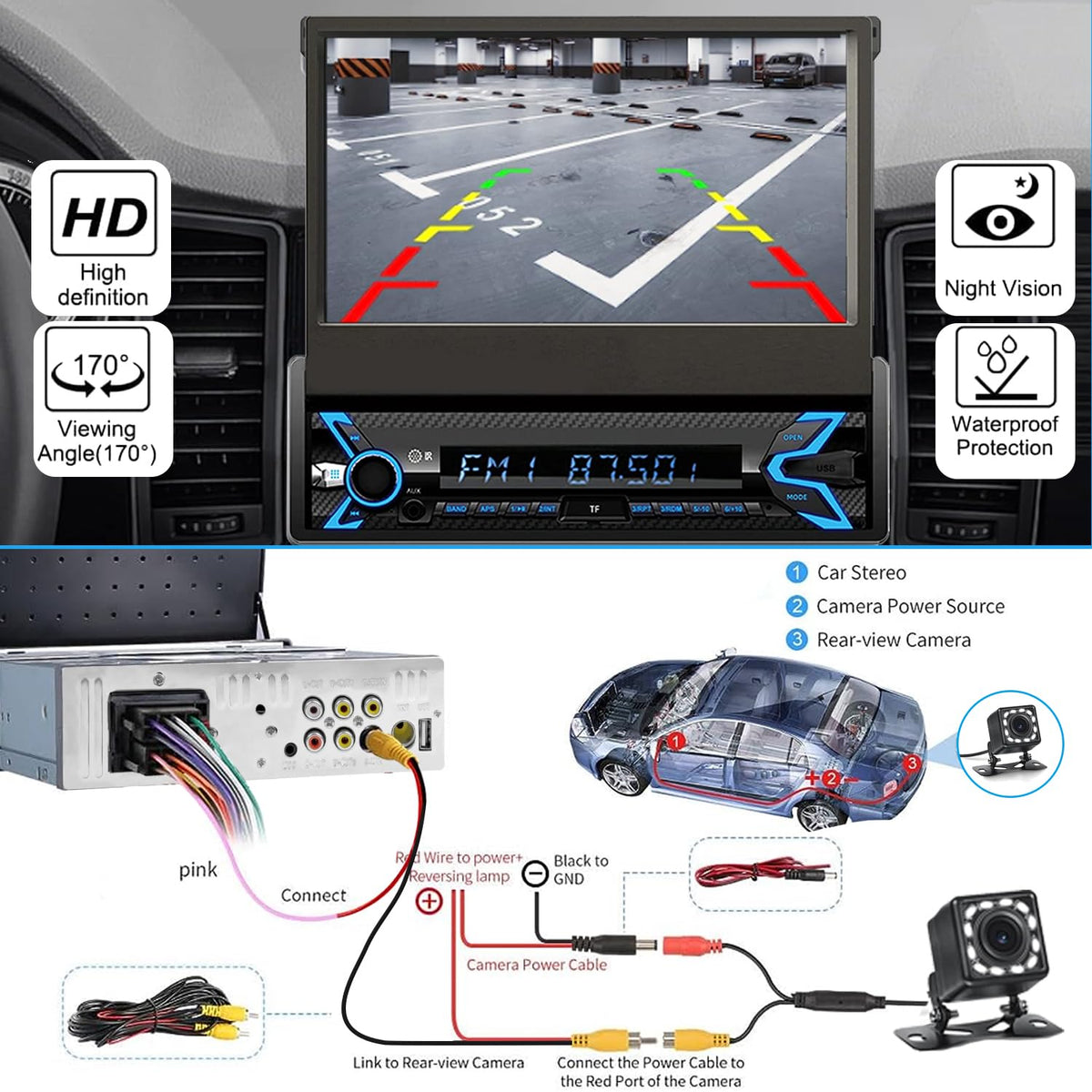 ??Compatible With Carplay & Android Auto?- The Single Din Car Stereo With Bluetooth Enables The Head Unit To Be A Display And A Controller For An Ios/Android Device. Connecting Via Usb Data Cable, Single Din Car Radio Flip Out Touchscreen Can Access Your Phone Functions, Such As Music, Gps Navigation Map, Calls, Messages, And Also Implement Voice Control. A Smarter, Safer Way To Use Your Phone While You Drive! | ??Phone Mirror Link Function?- If You Want To View Apps Not Supported By Carplay Or Android Auto On The Big Screen, Mirrorlink Is The Solution.You Can Watch The Video On The Flip Out Screen Car Stereo After Connection.You Can Cast All The Functions Which You Want On Your Phone To The Screen Of Bluetooth Car Stereo Carplay. Very Convenient! | ??Built-In Bluetoooth & Fm Radio?- Built-In Bluetooth 5.1, You Can Receive And Make Hands-Free Calls Without Being Disturbed While Driving, And Play Bluetooth Music, Which Greatly Improves Your Safety During Driving. With Fm 18 Preset Stations, Single Din Touchscreen Car Stereo Can Search Channels Automatically. | ??170