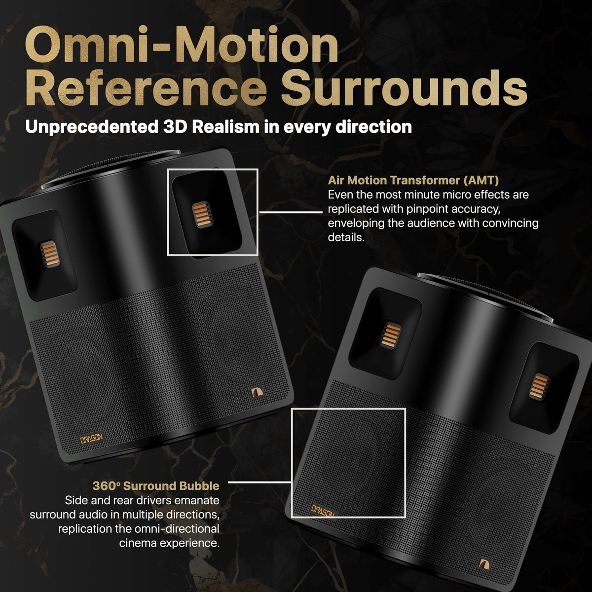 Dragon Is The World�S First 21-Channel Surround System With 15 Digital Amplifiers, Quad Subwoofers, 6 Upfiring Speakers And 2 Omni-Motion Reference Surrounds. The System Supports Dolby Atmos, Dolby Vision, Qualcomm Aptx Hd And Is The First Wireless System To Be Equipped With Dts:X Pro Technology.