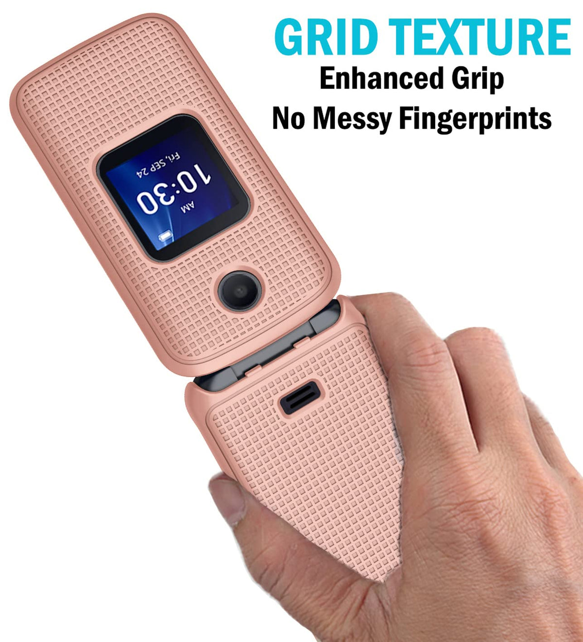 Nakedcellphone Case For Alcatel Go Flip 4 Tcl Flip Pro Phone, Slim Hard Shell Protector Cover With Grid Texture - Rose Gold Pink