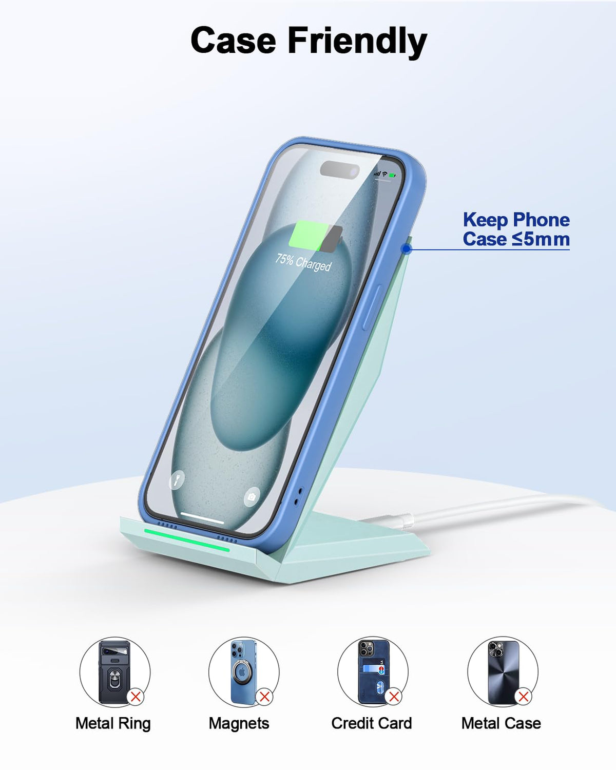 Nanami Wireless Charger Fast Wireless Charging Stand Desktop Charger Dock For Iphone 16/15/14/13/12/11 Pro/Xs Max, Samsung Gal