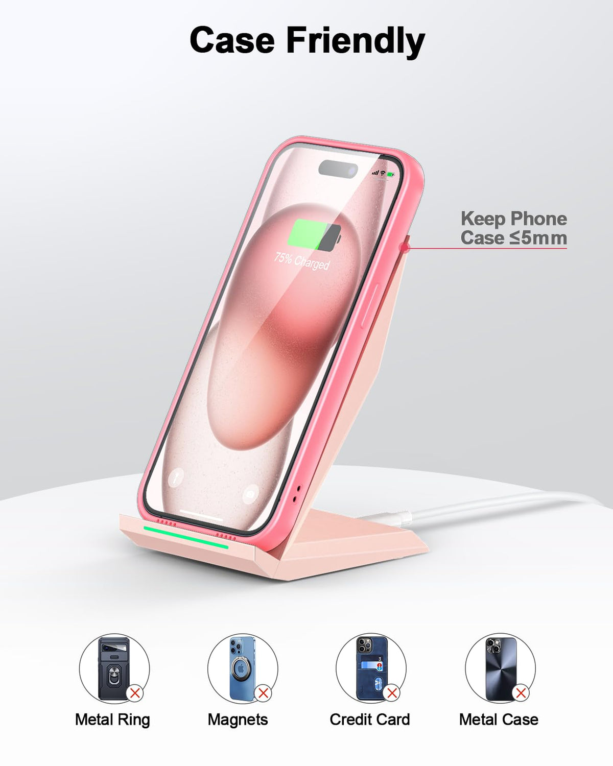 Nanami Wireless Charger Qi Certified Wireless Charging Stand Compatible Iphone 16/15/14/13/12/11 Pro/Xs Max/Xr/8, Samsung Gala