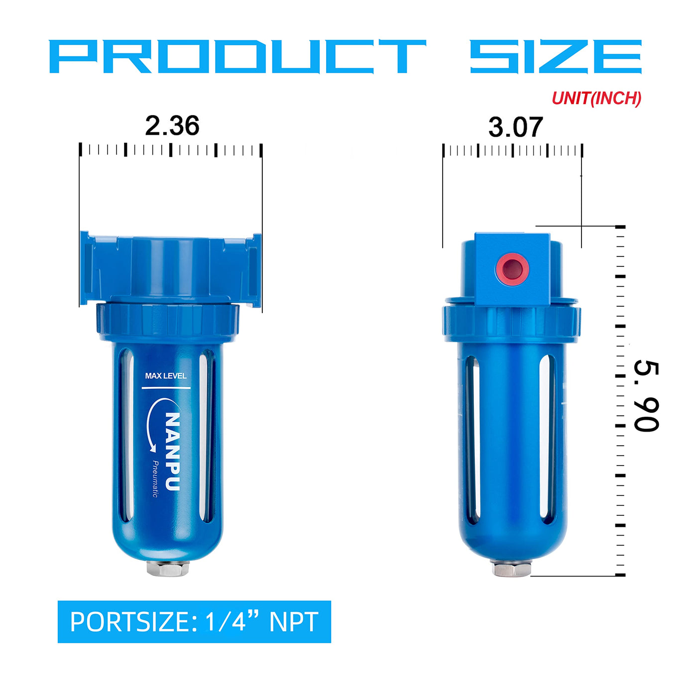 Nanpu Zinc Alloy Desiccant Dryer, Compressed Air In Line Filter, Moisture Water Separator, Poly Bowl (1/4'' Npt)