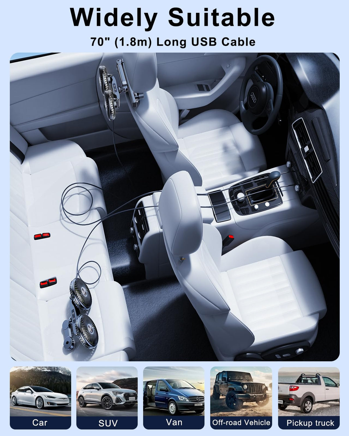 Nauttxon Car Fan For Back Seat [Comes With Car Charger] 360Rotatable Usb Car Seat Fan For Baby Rear Facing 3 Speeds Separate Con