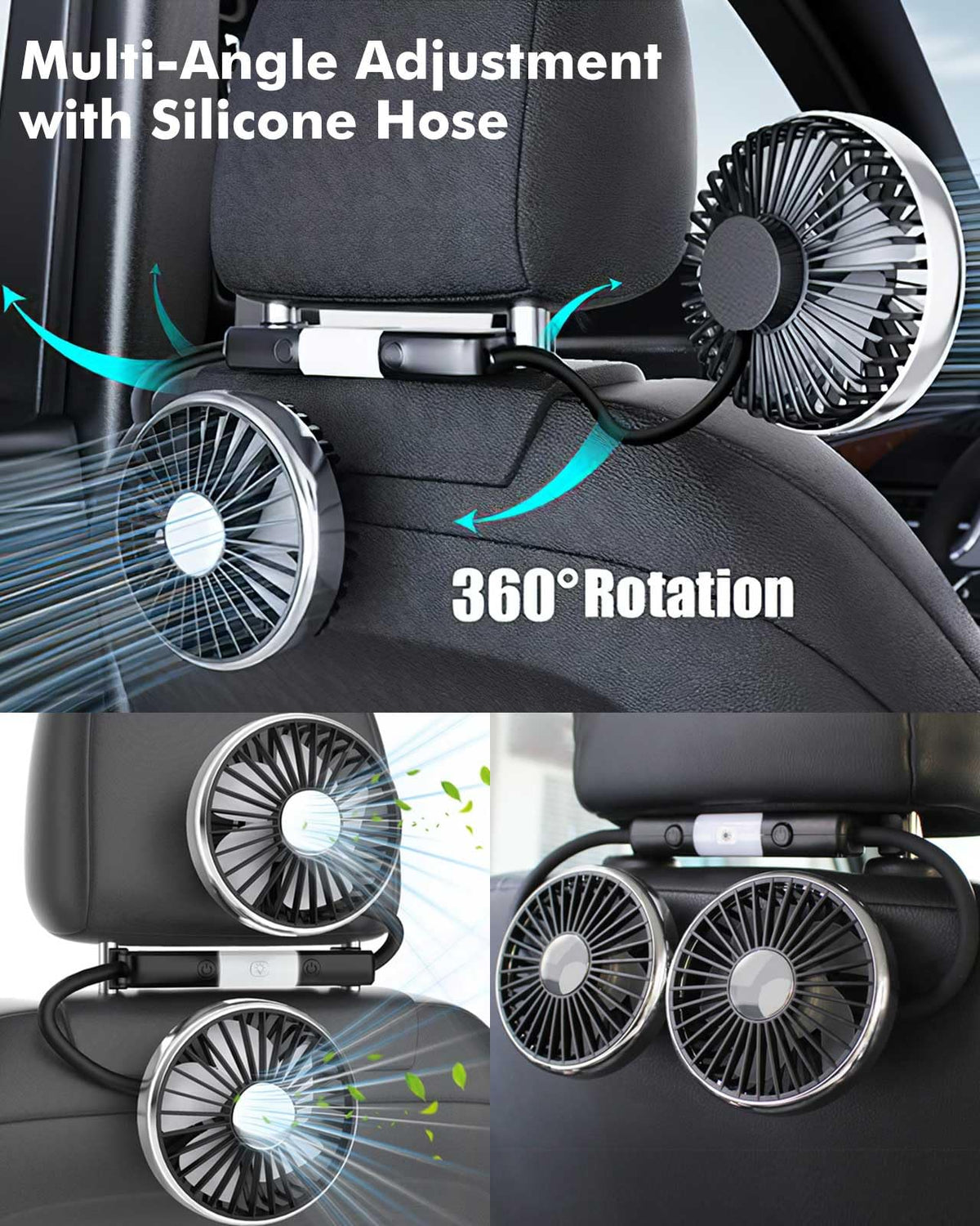 Q: How does the flexible hose design of the Nauttxon car fan improve airflow in my vehicle?A: The flexible hose design of the Nauttxon car fan allows for easy adjustment of the fan's position, enabling you to direct airflow exactly where it's needed. This feature ensures that both front and back seats receive a refreshing breeze, enhancing comfort for passengers.