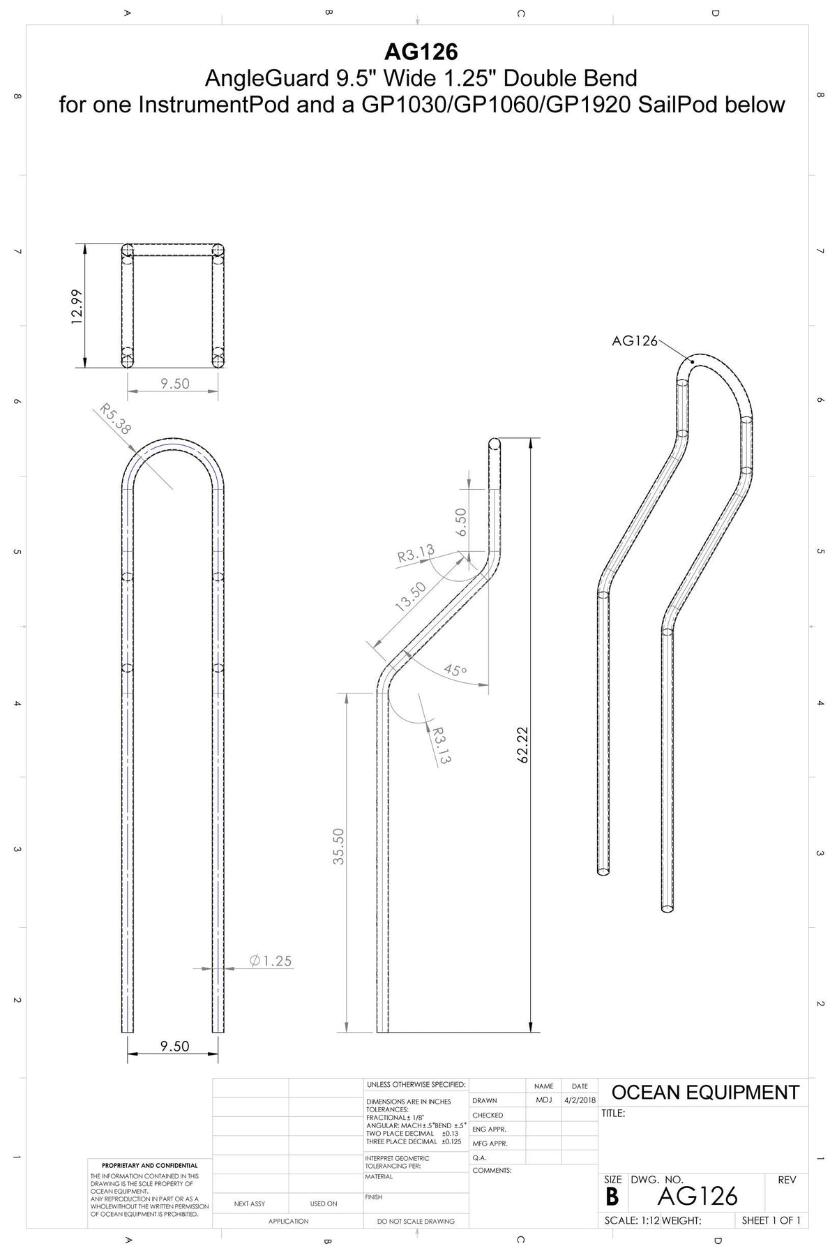 Navpod Ag126 Angleguard Double Bend 9.5'' Wide 1.25'' Diameter
