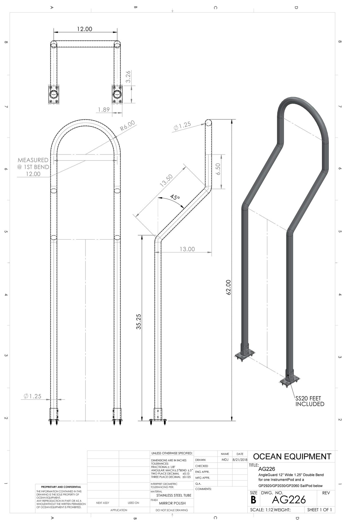 Navpod Ag226 Angleguard Double Bend 12'' Wide 1.25'' Diameter