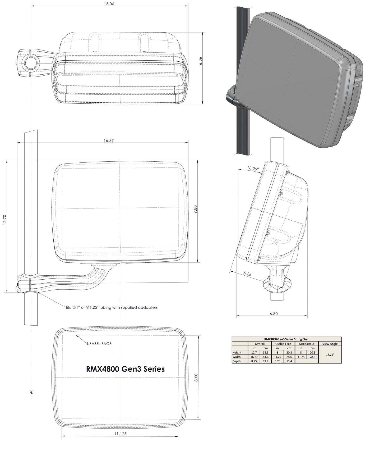 Navpod Rmx4800-07 Railmount Pre-Cut For Raymarine Axiom 9 (Pre-Cut Is For Surface Mount Using Rear Mounting Brackets, Requires Raymarine Right Angle Connector) (Fits 1'' Or 1.25'' Tubing)