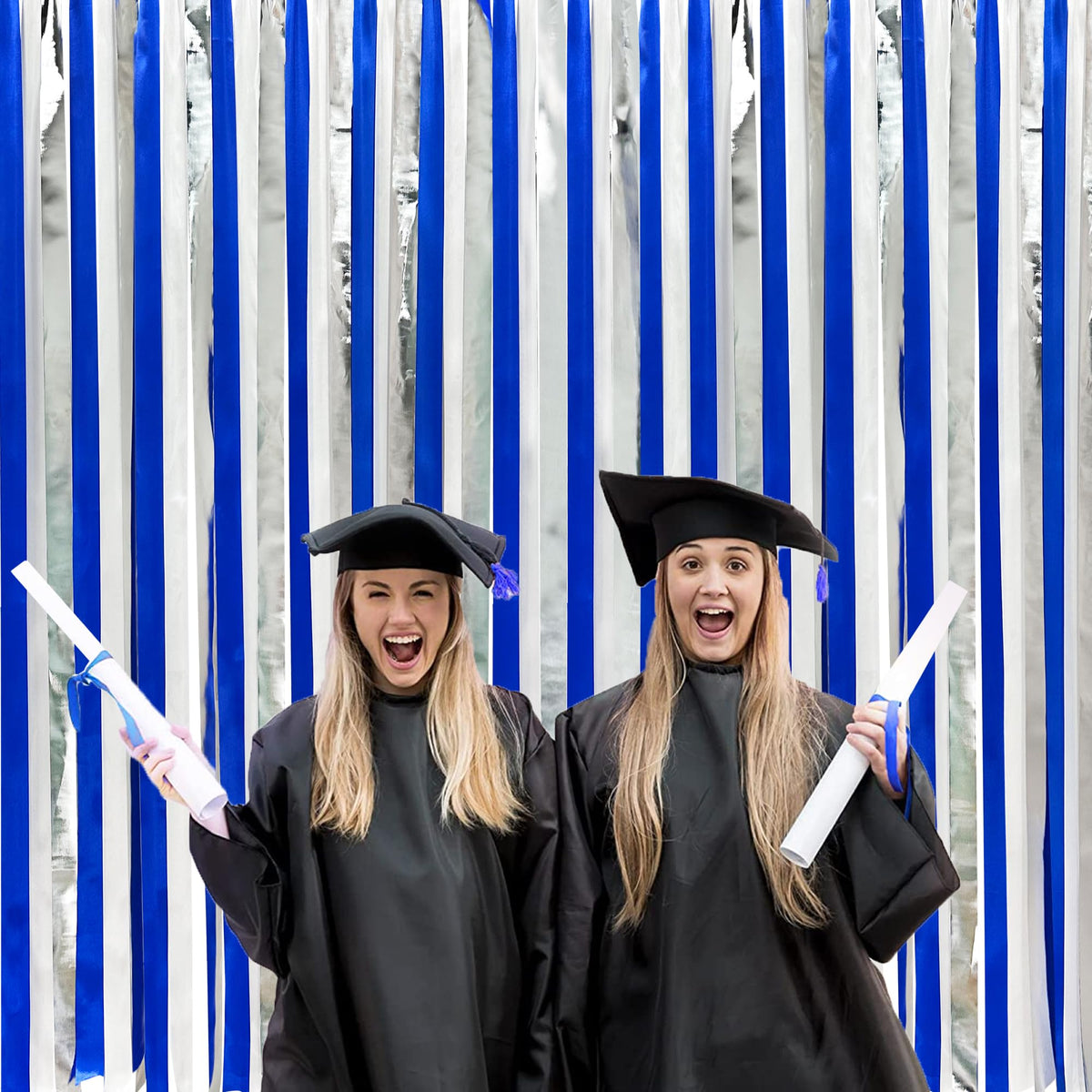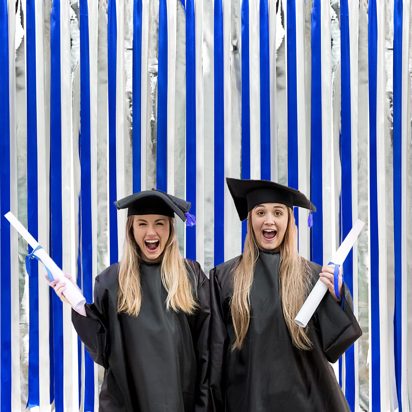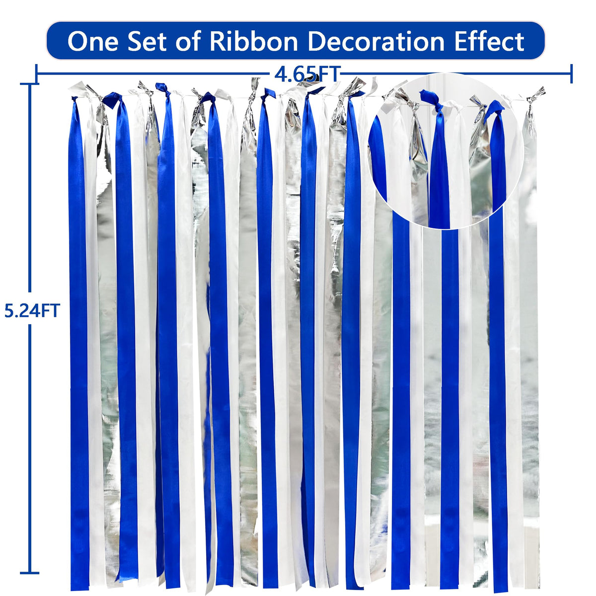 Navy Blue Silver White Party Decorations Streamer Backdrop 197 Ft 1.97'' Wide Satin Ribbon Fringe Hanging Garland For Birthday