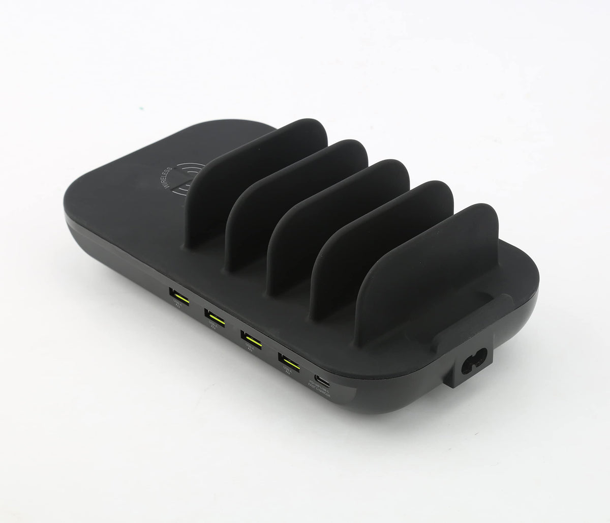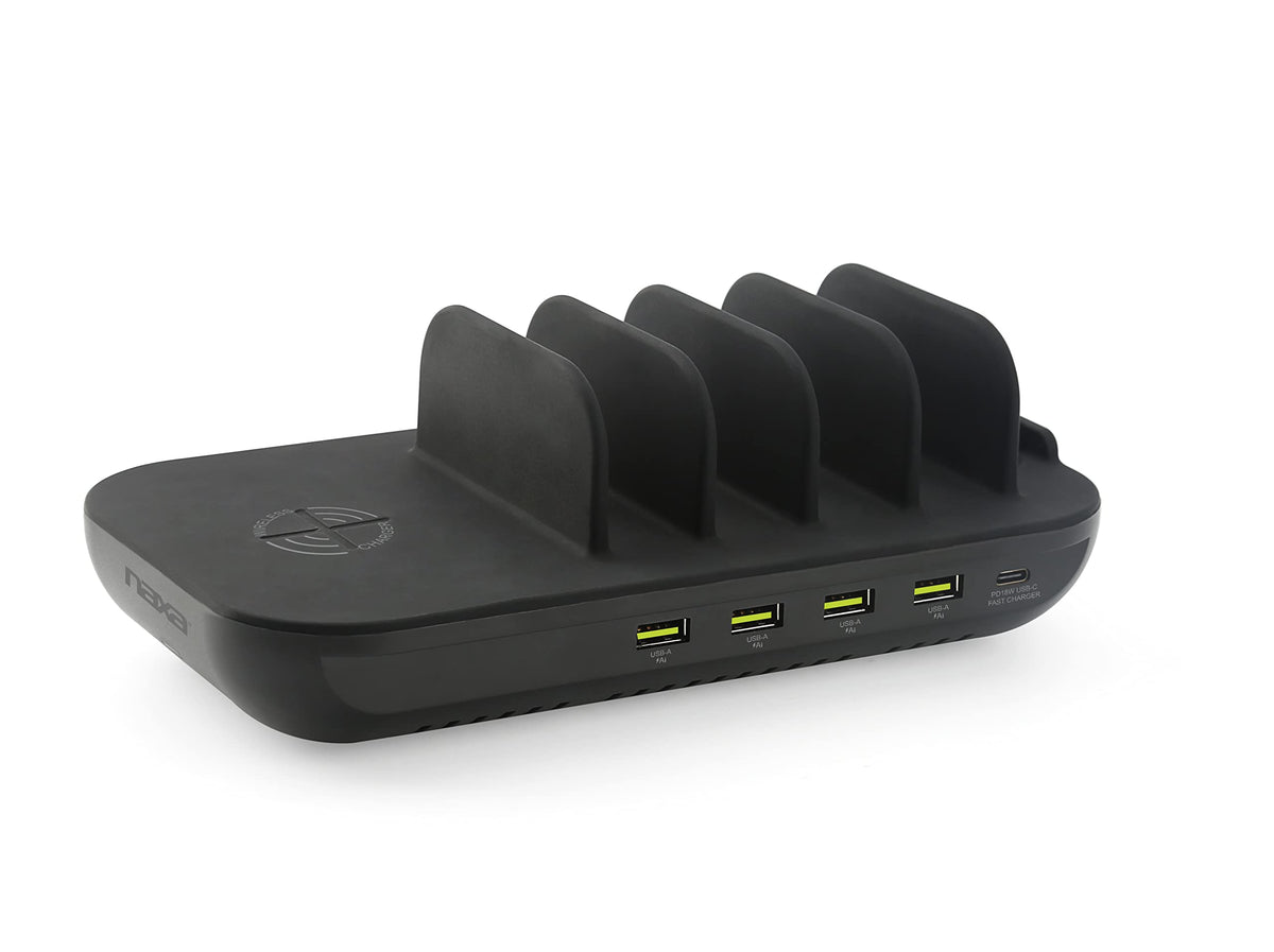 Naxa Electronics Nap-5002 6-In-1 Wireless Charging Station With Qi 10W Wireless, Usb-A, And Usb-C For Phones And Electronics, Bl
