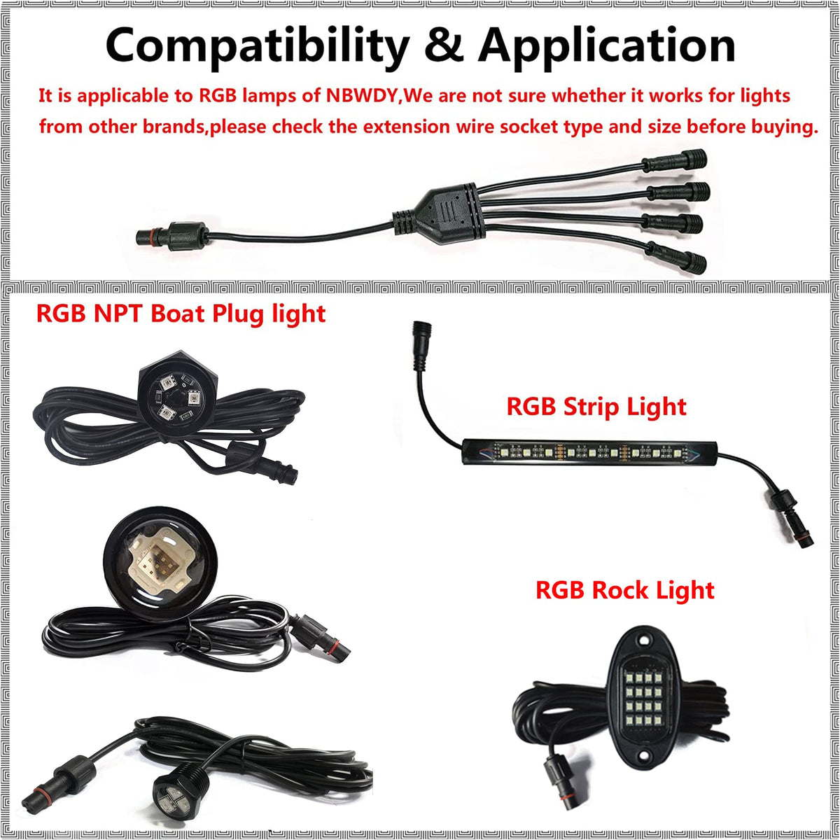Nbwdy Waterproof 1 4 Y Extension Cable Wire Cord Set For Neon Led Boat Drain Plug Underwater Light, Rock Light (1 To 4 Splitter