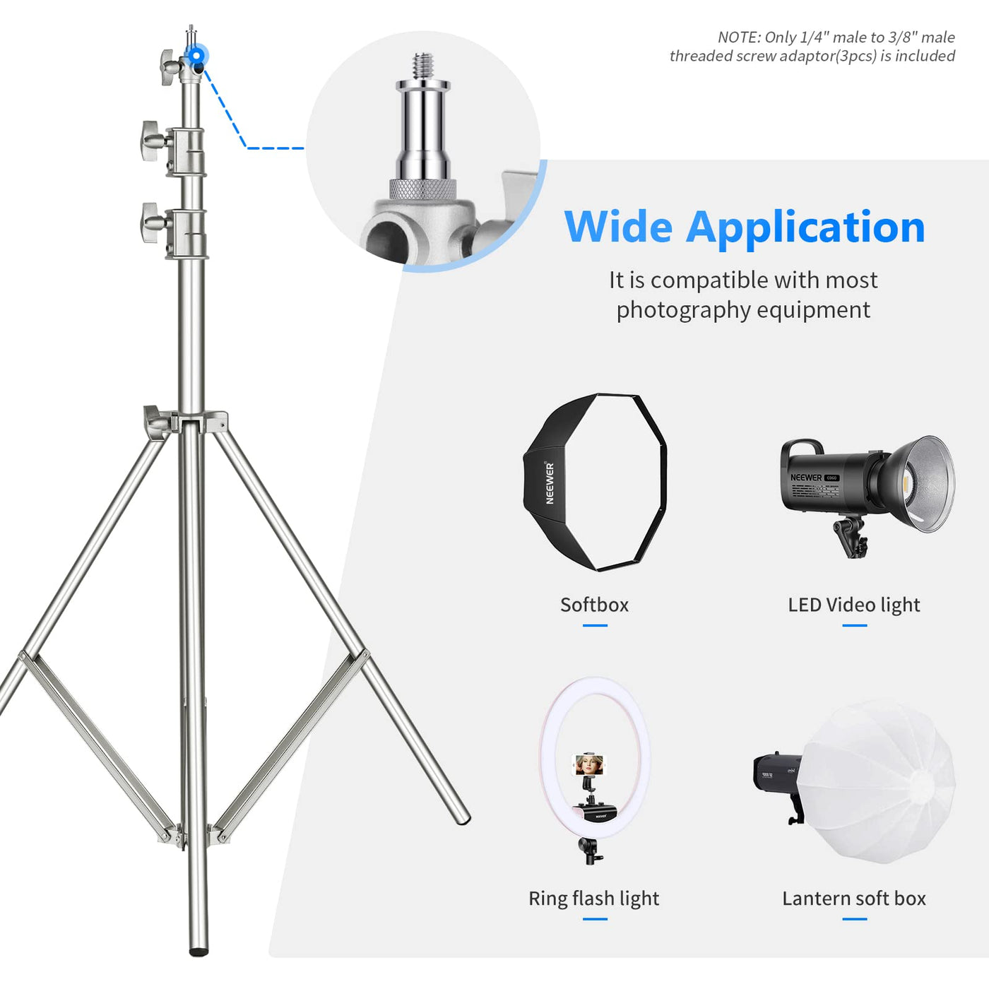 Neewer 2 Pieces Standard 1/4 To 3/8 Inch Metal Male Convertor Threaded Screw Adapter Spigot Stud For Studio Light Stand, Hotshoe