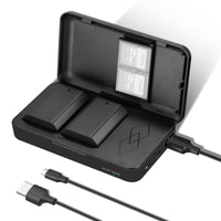 Compatible With Sony A7 Iii A7 Iv A1 A9 Ii A9 A7S Iii A7R Iv A7R Iii A7C A7 Iii A6600 Fx3 Cameras And Camcorders. Note: Not Fit For Sony A7 Ii Camera. A Full Replacement Battery Means Everything In Outdoor Photography. But What About Two? This 2Pcs Np-Fz100 Battery Set Gives Your Camera An Extended Battery Life For Taking More Images And Longer Videos While On Location. The Multifunctional Charging Case Can Charge Two Batteries At The Same Time And Keep The Batteries Safe And Portable For Traveling. When Batteries Are Installed Inside, You Can Even Use It As A Portable Charger For Smartphones And Tablets. Designed With Safe Charging In Mind, The Charging Case Provides Thorough Protection Against Overcharge, Overtemperature, Overcurrent, Overvoltage, Electric Shocks, And Other Hazards. Charge The Batteries With A Micro Usb Cable (Included) Or A Usb Type C Cable (Sold Separately). When Using The Charging Case As A Portable Charger, Please Connect It To Your Smartphone From The Usb A Port. Specifications Battery Type: Lithium Ion Battery Capacity: 16.4Wh, 2280Mah Input Voltage: Micro Usb (Included)/Usb Type C (Sold Separately) 5V 2.1A Output Power: 8.4V/1000Ma (1 Battery), 8.4V/500Ma (2 Batteries) Usb Power: 5V 2.1A Package Contents 2 X Np-Fz100 Rechargeable Battery 1 X Usb Charging Case 1 X Micro Usb Cable