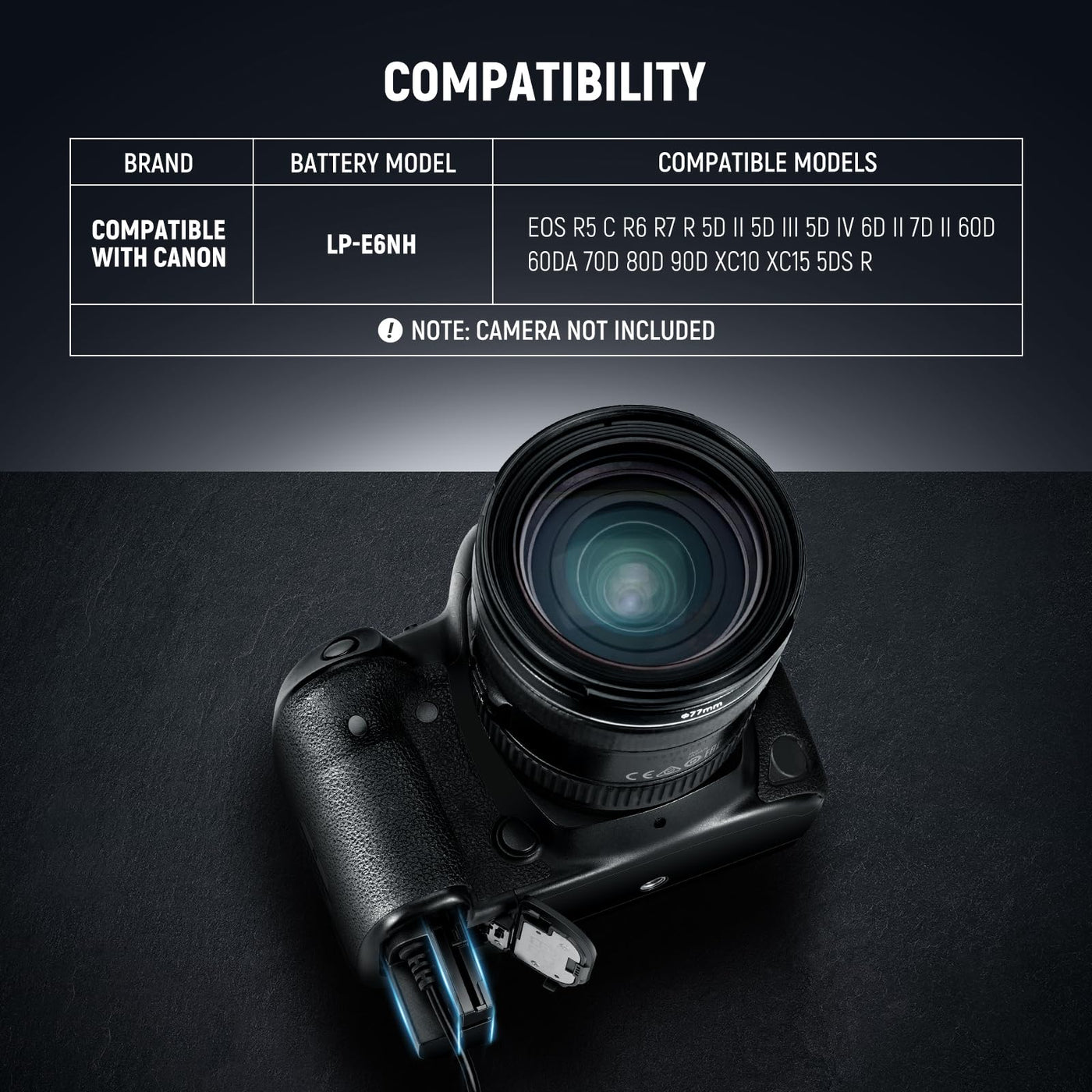 Compatible With Canon Eos R5 C R6 R7 R 5D Ii 5D Iii 5D Iv 6D Ii 7D Ii 60D 60Da 70D 80D 90D Xc10 Xc15 5Ds R And Other Devices That Accept Lp-E6Nh Lp-E6N Lp-E6 Batteries. Works With All Neewer V Mount Batteries, Including Ps099E, Bp-95W, Bp-150Ws, Bp-190Ws, Bp-V47, And V Mounts Of Other Brands. More Battery Power And A Longer Continuous Runtime For Photography, Live Streaming, Video Conferencing, Vlogging, And Filmmaking. The Protection System Prevents Overcharging, Short Circuits, Overheating, Overcurrent, Overvoltage, And Other Possible Damages. Fully Decoded, No Warning Pop Ups. Specifications Model: Vp-Lpe6Nh Dimensions: 2.2'' 1.5'' 0.8''/57 38 21Mm Weight: 2.3Oz/65G Wire Length: 5.25'/1.6M (Fully Stretched) Min Output Voltage: 7.8V Max Output Voltage: 8.4V D-Tap Input Voltage: 9.6-20V D-Tap Input Current: 2A (Min) Output Current: 2A (Max) Continuous Output Current Maximum Output Current: =3A Output Protection Current: 3.8A-4.9A Operating Temperature: 32-113F/0-45C Storage Temperature: -4-140F/-20-60C Package Contents 1 X Lp-E6Nh To D Tap Dummy Battery 1 X User Manual