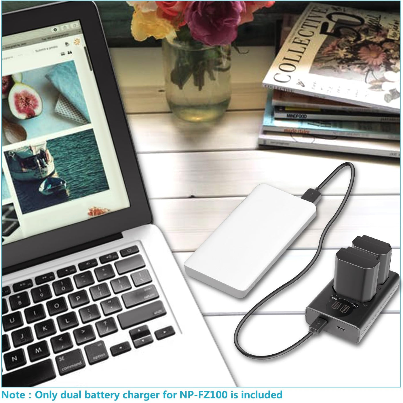 Note: It Is Desgned With A Usb Tap-C Port But Usb Tap-C Cable Is Not Included. Battery Is Not Included.Description:It Is A Battery Charger Designed For Sony Np-Fz100 Battery.Compatible With Sony A9 A7Iii A7Riii Cameras.It Can Charging 1 Or 2 Np-Fz100 Batteries At The Same Time.Multiple Charging Options: It Can Be Charged By Usb Adapter, Power Bank, Cellphone Charger, Car Charger Or Other Devices With Usb Port.Compact Portable Design, Convenient For Travelers And Business Users.Led Display Screen Can Clearly Show The Charging And Power Status.Specifications:Product Type: Dual Chargerminimum Input: 5V/ 2.1Aoutput(1 Battery): 8.4V/700Maoutput(2 Battery): 8.4V/500Mamaterial: Plastic And Metalcolor: Blackport: Micro-Usb And Tap-C Port (Usb Tap-C Cable Is Not Included)Size: 3.54X 2.17X 0.9 Inches / 9X 5.5X 2.3 Centimeternet Weight: 2.26 Ounce/ 64 Grampackage Contents:1X Dual Charger For Sony Np-Fz100 Battery1X Micro-Usb Cable