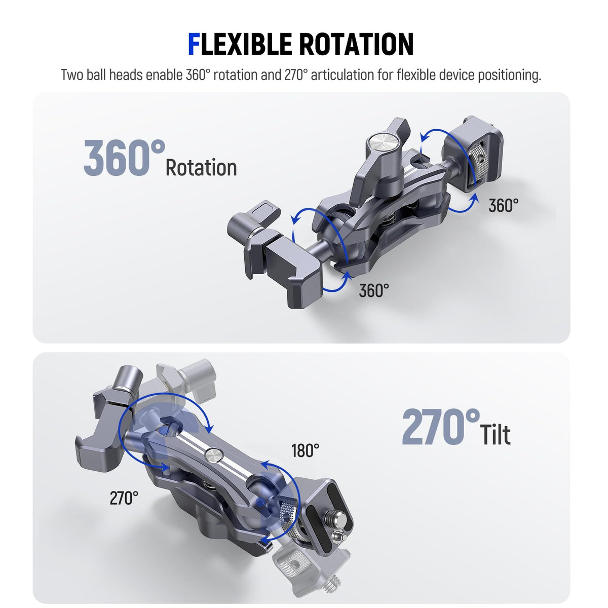 This Lightweight And Compact Magic Arm Is Ideal For Photographers And Videographers On The Go. An Nato Clamp Can Instantly Connect To A Camera Cage, And A 1/4'' Screw Is Compatible With Various Devices Up To 11Lb/5Kg. Two Ball Heads With 360 Rotation And 270 Tilt Allow For Precise Positioning Of Your Camera And Accessories. Rubber Pads And Anti Twist Pins Prevent Wobbling And Scratches. Specifications Model: Ua072 Item Type: Magic Arm Compatibility: For Camera Cage Application: Filmmaking/Photography Main Features: Lightweight Mounting Points: 1/4'' & Nato Main Material: Aluminum Alloy Load Capacity: 11Lb/5Kg Dimensions: 4.3''X1.7''X0.9''/110X42X22Mm Weight: 2.7Oz/76G Package Contents 1 X Magic Arm