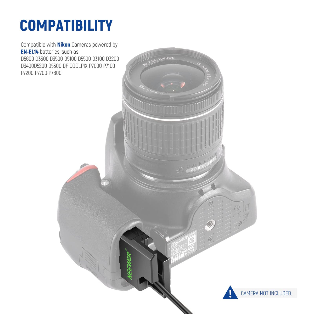Neewer Replacement For En El14 Dummy Battery With Ac/Dc Coupler Power Adapter, Ep 5A Power Supply Compatible With Nikon D5600 D3