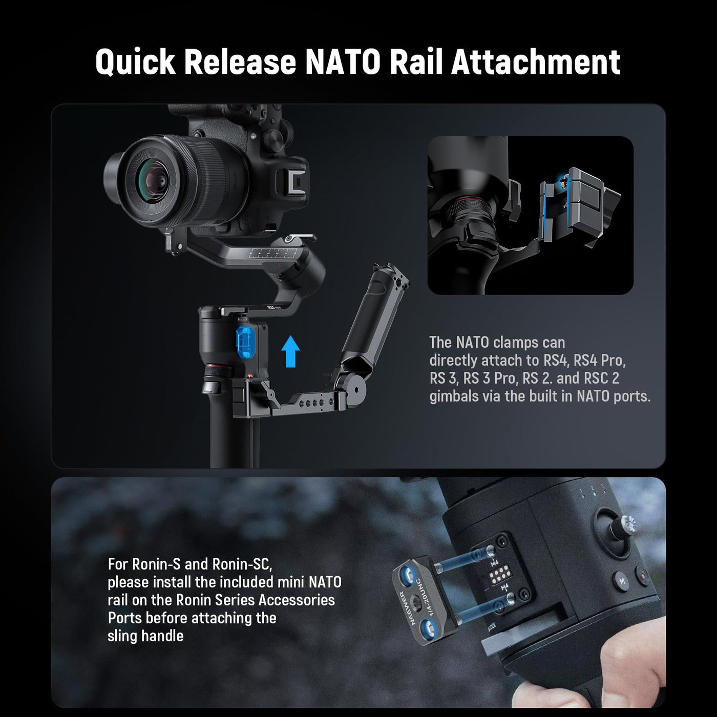 Neewer Rs4 Rs3 Adjustable Gimbal Sling Handle Grip With Nato Rail, Compatible With Dji Rs4 Rs4 Pro Rs3 Rs3 Pro Rs3 Mini Rs2 Rsc2