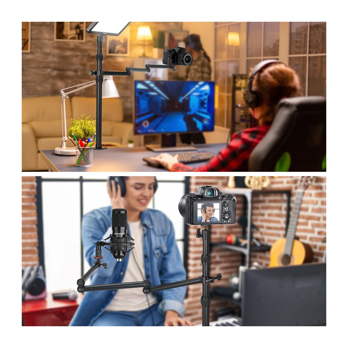 Neewer Upgraded Overhead Camera Rig With Trifold Camera Boom Arm (Max Load 2Lb), 47''/1.2M Telescopic Desk Mount Stand (Max Load