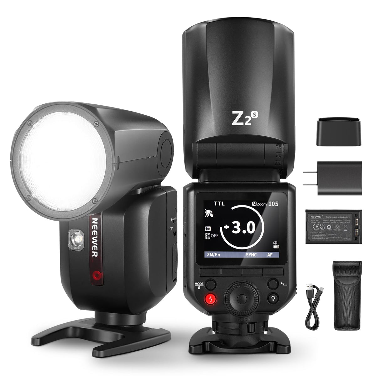 Neewer Z2 S 2.4G Ttl Round Head Flash Speedlite For Sony, Upgraded Ui, 2 Adjustable Modeling Lamps, Ttl/M Quick Switch Tcm Key,