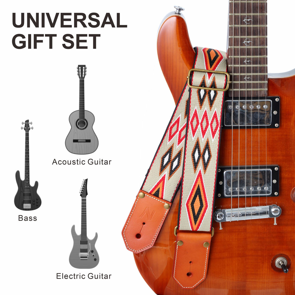 Do You Looking For A Distinctive Guitar Strap To Show Your Personality?Our Nefelibata Guitar Strap Is Your Good Choice!We Guarantee That You Will Like This Guitar Strap:- This Guitar Strap Is Crafted With Exquisite Craftsmanship, Super Soft And Durable.- The Specially Diamond Genuine Leather Ends Design Makes Your Guitar Strap More Distinctive Than Similar Straps. - Measures 2'' Wide And Can Be Extended From 36'' To 63''.- This Universal Shoulder Guitar Strap Is Suitable For Most Acoustic Guitars, Basses, Classical Guitars, And Mandolins. - Special Gift For Guitarists And Musicians.Product Informationstrap Material: Cottonends Material: Genuine Leatherbuckle Material: Abs And Metalwidth: 2''Min Length: 36''Max Length: 63''Suitable For: Acoustic Guitars, Electric Guitars, Bass Guitars, Ukulelespackage Include: 1 X Guitar Strap100% Satisfaction Guaranteed If You Are Not Delighted With Your Purchase, Please Feel Free To Contact Us.