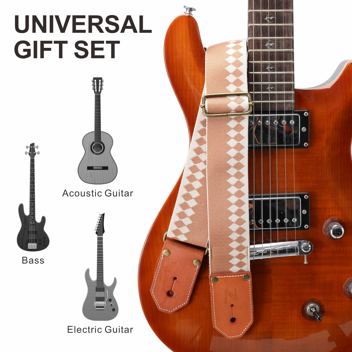 Do You Looking For A Distinctive Guitar Strap To Show Your Personality?Our Nefelibata Guitar Strap Is Your Good Choice!We Guarantee That You Will Like This Guitar Strap:- This Guitar Strap Is Crafted With Exquisite Craftsmanship, Super Soft And Durable.- The Specially Diamond Genuine Leather Ends Design Makes Your Guitar Strap More Distinctive Than Similar Straps. - Measures 2'' Wide And Can Be Extended From 36'' To 63''.- This Universal Shoulder Guitar Strap Is Suitable For Most Acoustic Guitars, Basses, Classical Guitars, And Mandolins. - Special Gift For Guitarists And Musicians.Product Informationstrap Material: Cottonends Material: Genuine Leatherbuckle Material: Abs And Metalwidth: 2''Min Length: 36''Max Length: 63''Suitable For: Acoustic Guitars, Electric Guitars, Bass Guitars, Ukulelespackage Include: 1 X Guitar Strap100% Satisfaction Guaranteed If You Are Not Delighted With Your Purchase, Please Feel Free To Contact Us.