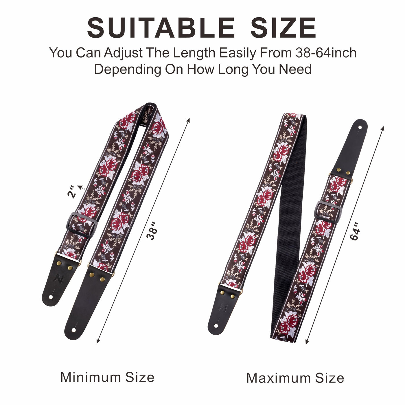 Looking For A Distinctive Guitar Strap To Show Your Personality?Our Nefelibata Guitar Strap Is Your Good Choice!We Guarantee That You Will Like This Guitar Strap:- This Great Value Package Can Save You A Lot Of Costs Of Accessories, Suitable For Guitar Learners And Musicians.- This Guitar Strap Is Crafted With Exquisite Craftsmanship, Super Soft And Durable.- The Specially Lengthened Genuine Leather Ends Design Makes Your Guitar Strap More Distinctive Than Similar Straps. - Measures 2'' Wide And Can Be Extended From 38'' To 64''.- This Universal Shoulder Guitar Strap Is Suitable For Most Acoustic Guitars, Basses, Classical Guitars, And Mandolins. - Special Gift Sets For Guitarists And Musicians.Product Informationstrap Material: Polyesterends Material: Genuine Leatherbuckle Material: Abs And Metalwidth: 2''Min Length: 38''Max Length: 64''Suitable For: Acoustic Guitars, Electric Guitars, Bass Guitars, Ukulelespackage Include: 1 X Guitar Strap 2 X Strap Locks 1 X Headstock Buttoned Tie 1 X Headstock Lace Tie 4 X Guitar Picks