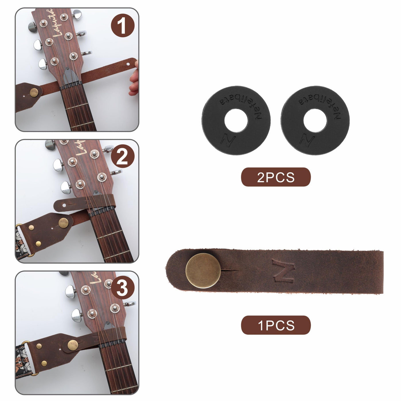 Full-Grain Natural Cowhide Is The Only 100 Natural Leather On The Market That Has Been Processed To Be The Toughest And Most Durable Full Grain Leather Guitar Headstock Strap Tie, Guitar Neck Strap Button For Bass, Electric Acoustic Guitars, Come With Free 1 Pair Strap Locks And 2 Guitar Picks, Brown Full Grain Leather-As A Leather Guitar Accessory, The Guitar Headstock Strap Tie Is Made Of Full-Grain Double-Layer Vegetable Tanned Cowhide Strong Quality-The Leathers Headstock Strap Adapter Can Optial Fit The Head Of The Guitar And Will Not Hurt Your Guitar At All It Will Not Deform After A Long Time Use Easy To Use-Guitar Neck Strap Button Comes With Free 1 Pair Strap Locks And 2 Guitar Picks You Just Need 1 Minute To Install It Widely Compatible-1316 Wide X 7 78 Length Guitar Headstock Strap Ties Can Be Apply On Acoustic, Electric, Bass Guitars, Ukulele, Banjo Straps 100 Satisfaction-We Offers Replacement For Any Defect In Material, Workmanship Or Product Quality Under Normal Use For 5-Years From The Date Of Purchase