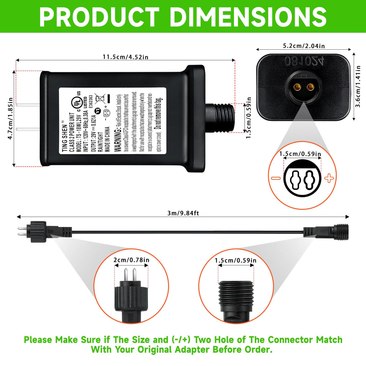 We Are Selling A Series Of Low Voltage Led Adapters With Different Output Volt And Watts, If You Dont Know How To Choose The Right Adapter For Your Led Device, Please Contact Us For Help. Please Check Images And Specifications To Make Sure If It Fits For Your Device Or Not Before Order. Product Specifications: Waterproof: Ip44 Input Voltage: 120V, 50/60Hz Output Voltage:29V, 0.62A Rated Watts: 18W Package Includes: 1* Led Adapter Note: 1.Please Check The Voltage, Current, Wattage, As Well As Positive And Negative Two Holes Of The Connector Before Ordering. 2.Please Check Again Whether The Female Plug Of Our Adapter Matches With The Male Plug Of Your Led Lights. 3. The Adapter Only With Steady On Mode.