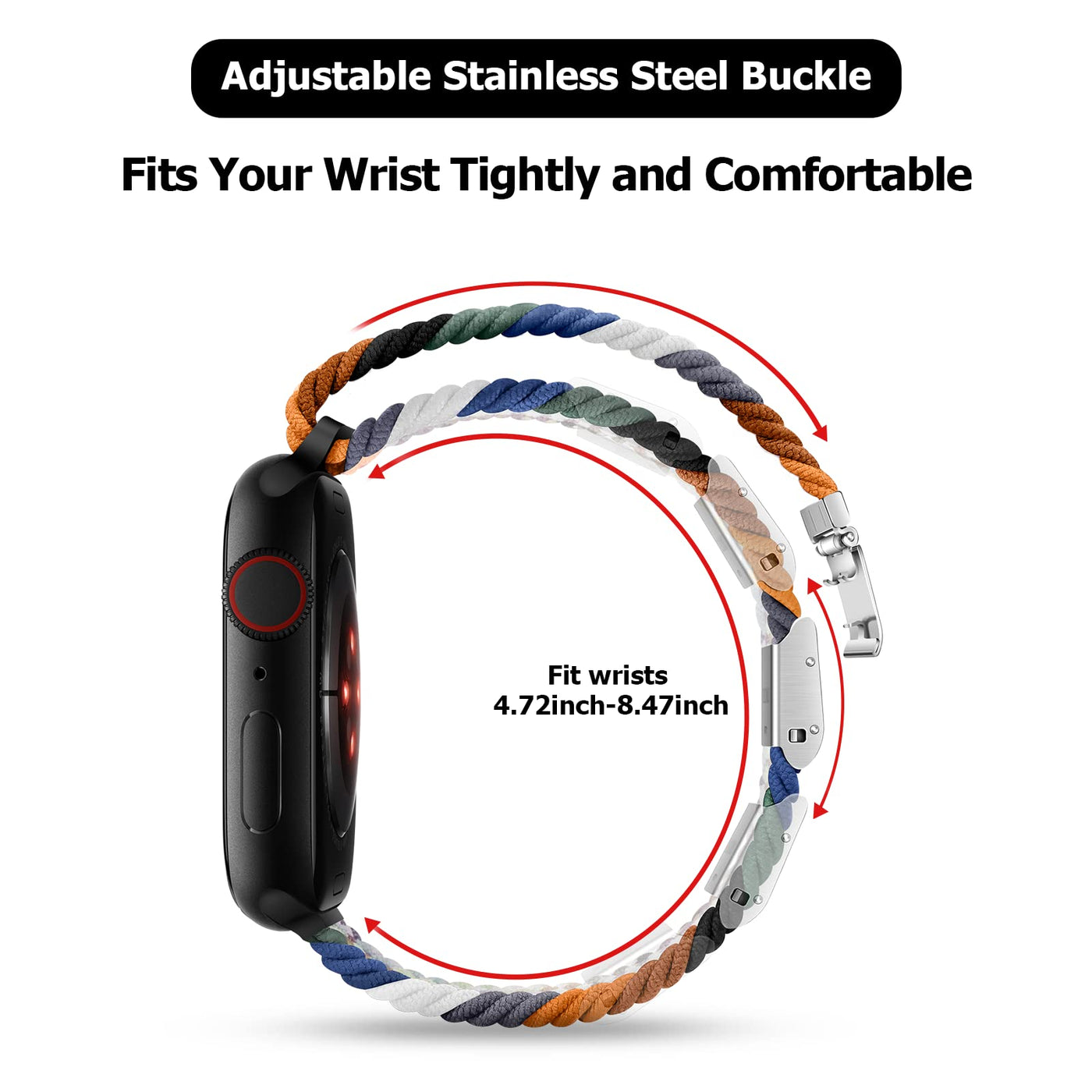 Braided Stretchy Loop Band Compatible With Apple Watch 38Mm 40Mm 41Mm 42Mm 44Mm 45Mm 49Mm For Men And Women, Stretch Nylon Elastic Braided Sport Strap For Iwatch Series Se 8 7 6 5 4 3 2 1Many Choices For Apple Watch Band - We Have Many Colors To Choose, Such As Blue, Black, Green, Pride, Hot Pink, Red, Rainbow And Boho And There Are 2 Sizes, One Band Is For Apple Watch Series 38Mm 40Mm 41Mm, The Other Sport Band Is For Apple Watch Series 42Mm 44Mm 45Mm 49Mm Please Check Watchas Back For Size Referencesstretchy And Adjustable Band For Apple Watch - Our Elastic Braided Band For Apple Watch Series Comes With Adjustable Metal Buckle, You Can Adjust The Band For Apple Watch To Your Comfort Level And The Watch Face Wont Move Around Your Wristcomfortable Replacement Strap For Apple Watch - The Stretchy Braided Band For Iwatch Is Woven By Nylon Which Is Skin-Friendly, Lightweight, Durable And Breathable Fabric, If You Wear The Wristband With Daily Basis, You Will Feel Comfortable Touch Feeling On Your Wrist Great To Use For Sport Activities And Many Other Occasionseasy To Install And Remove - The Braided Loop Band For Apple Watch Comes With Watch Lugs On Both Ends, Which Locks Onto Your Watch Precisely And Securely Easy For Installing Directly And Removing With One Button Package Included - 1 X Band For Iwatch 42Mm 44Mm 45Mm 49Mm (Only Include Band For Apple Watch, No Watch Included)