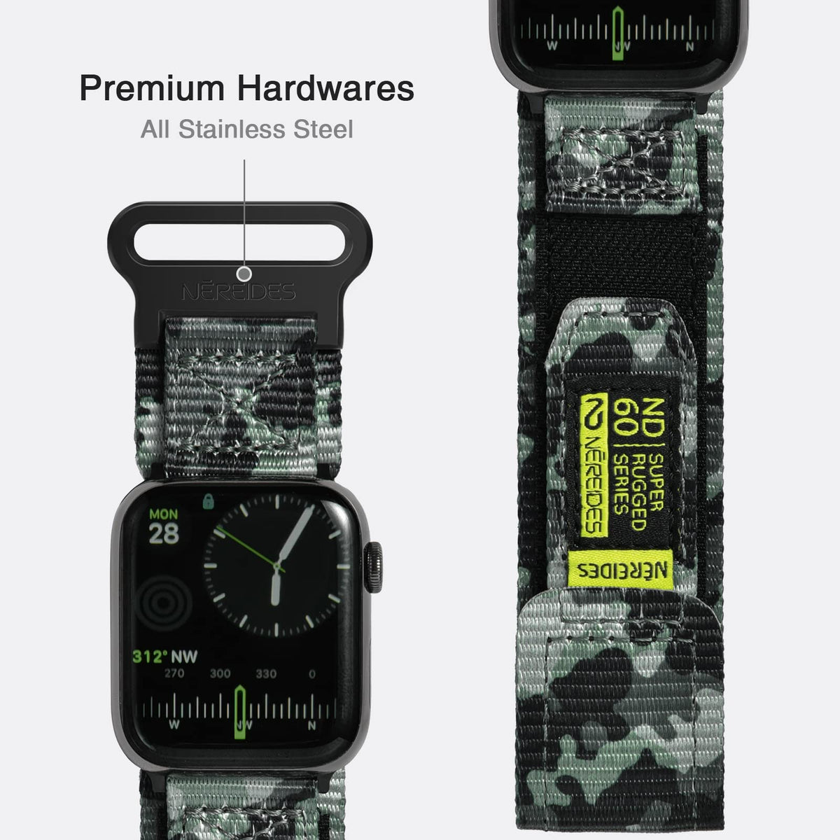 Q: What material is the Nereides compatible band made of?A: The Nereides band is made from soft nylon material that offers both comfort and durability, along with a stainless steel connector for enhanced longevity.