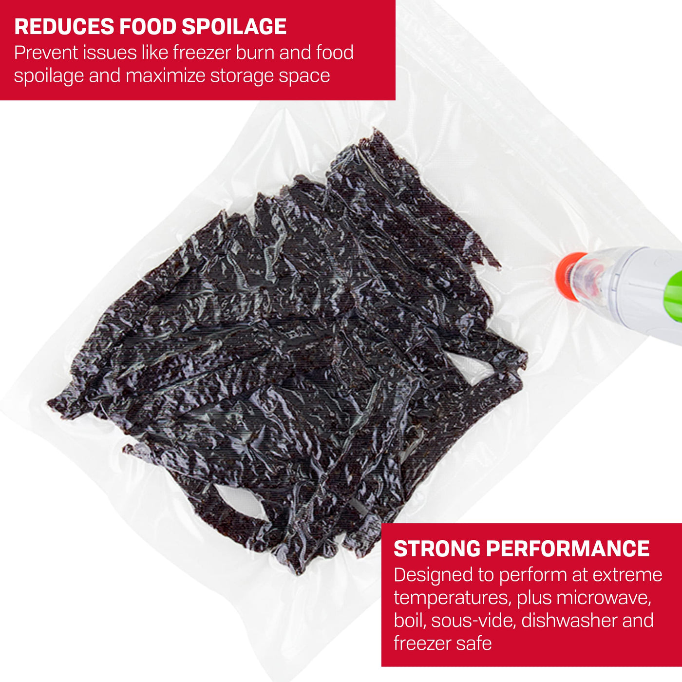Traditional Storage Methods Can Allow Food Containments To Seep In. Oxygen-Fed Mold And Bacteria Cause Food Spoilage, Moisture Leads To Freezer Burn. And Penetrating Odors Compromise Flavors. Vacuum Sealing Extracts The Air And Provides A Moisture Barrier So Your Food Will Stay Fresh And Last Longer. Nesco'S Patented Bagging Material Is Specially Designed To Lock In Freshness And Flavor By Keeping Air, Moisture And Odors Out. The Multi-Layer Construction Is Tear-Resistant And Features Cross-Venting Channels On Both Sides Allowing For Maximum Air Extraction. It Is Bpa Free And Safe To Microwave, Boil And Freeze. You Can Even Put Them In The Dishwasher & Re-Use. Only Works With Nesco Vs-09Hh Hand Held Vacuum Sealer.