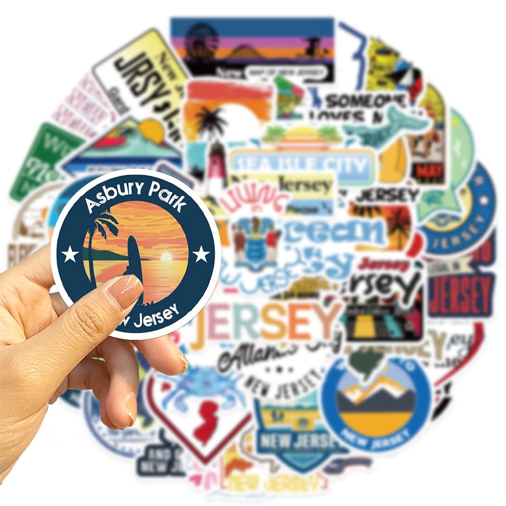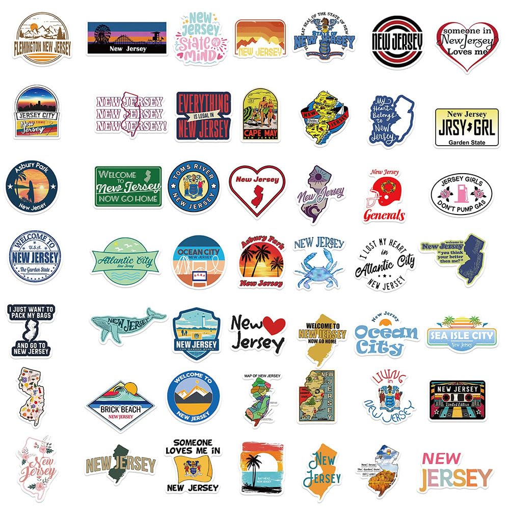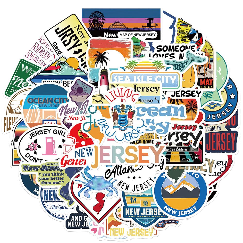 New Jersey Stickers |50Pcs New Jersey Waterproof Vinyl Decals For Water Bottles Laptop Luggage Cup Mobile Phone Computer Skatebo