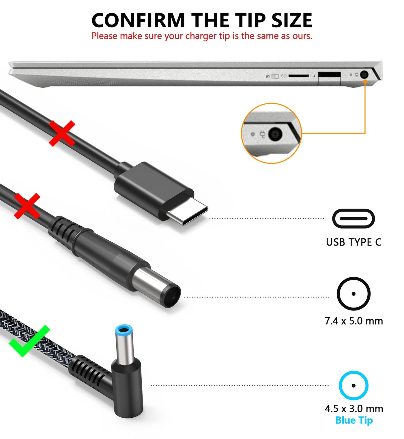New Slim 65W Laptop Charger For Hp Envy X360, Spectre X360 13 4193Nr 15 Ap001Nx 15T Ap000, Probook X360 11 450 650 640 G1 G2 G3