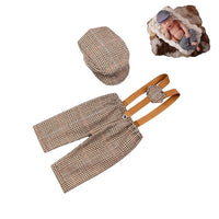 Newborn Monthly Baby Photo Props Stripe Cool Boys Cap Rompers Photography (Light Coffee)