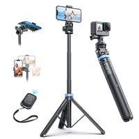 Q: How tall does the tripod extend and is it portable?A: The tripod extends from 13" to 62", making it one of the longest selfie sticks available. Its lightweight aluminum alloy design makes it highly portable, perfect for travel.