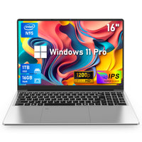 Niakun 16 Inch Laptop Computer Gaming Laptop 16Gb Ram 1Tb Ssd N95 Processor Fhd 1920 * 1200 180 Angle Open Backlit Keyboard Windows 11 Pro Fingerprint Unlock Wifi 5 Bt 4.2 Uhd Graphics 750 Mhz