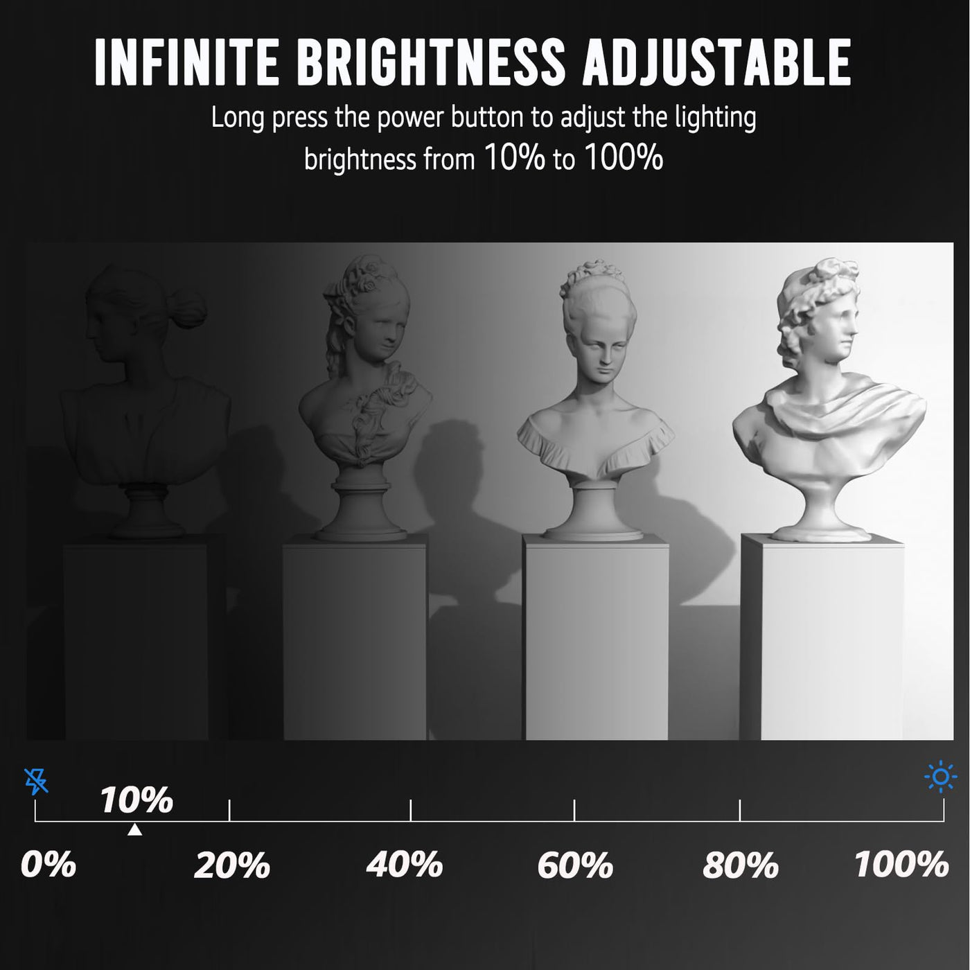 Q: Is the lighting adjustable for different shooting conditions?A: Absolutely! The brightness of the NiceVeedi light is adjustable from 10% to 100%, allowing you to customize the lighting to suit various shooting conditions and creative needs.